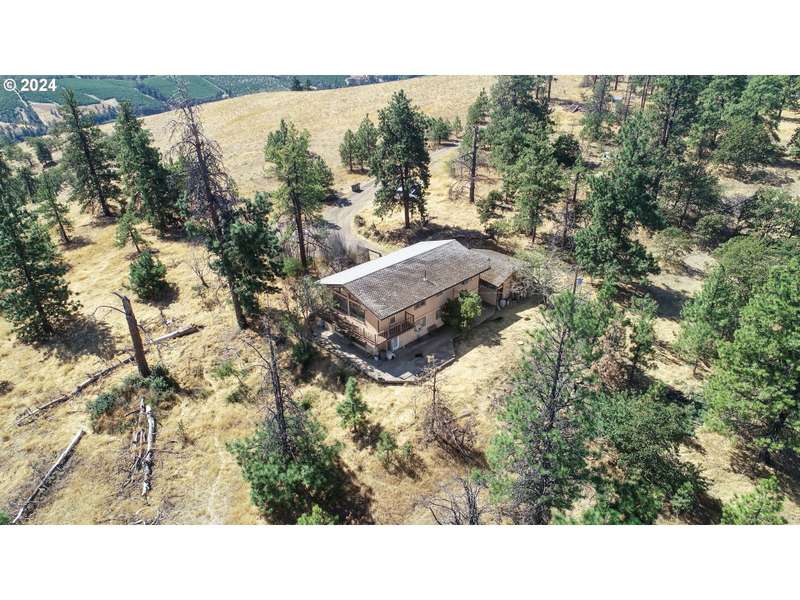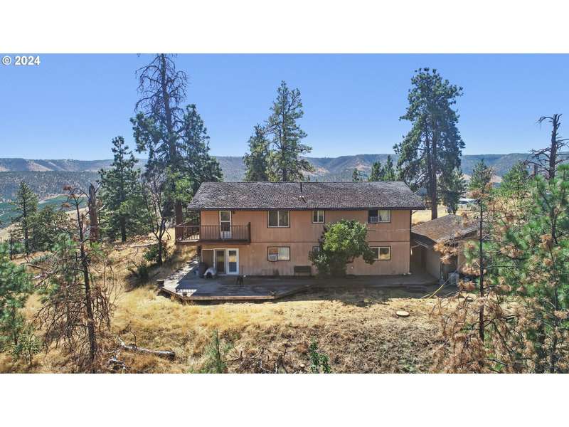 High on a ridgetop on nearly 60 acres of land, this expansive 2,800 square foot home offers breathtaking views of the Columbia River, The Dalles Dam and Mill Creek valley. This 5-bedroom, 2-bathroom home is a unique opportunity for those looking to create their perfect countryside escape. The home boasts a spacious layout with 2 bedrooms/ 1 bathroom on the main level, and 3 bedrooms/ 1 bathroom on the upper level. Both floors have their own kitchen—ideal for multi-generational living or entertaining guests. Imagine waking up to panoramic views from the large wrap-around deck, where you can enjoy the tranquil beauty of nature in complete solitude. While this home is a fixer-upper, its potential is limitless. With your vision and creativity, this property can be transformed into a stunning estate, providing both comfort and luxury in an unparalleled setting. There is potential to divide the property for further development, or maintain the land as-is for room to wander and live out your countryside dreams. (Buyer to verify intended uses.)Whether you’re looking for a peaceful retreat or a project to make your own, this property offers endless possibilities! Not a drive-by; please call your favorite agent for a showing.