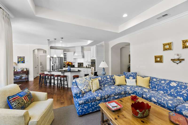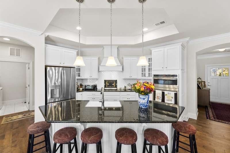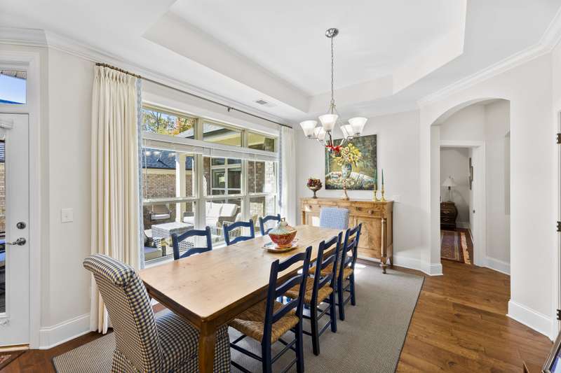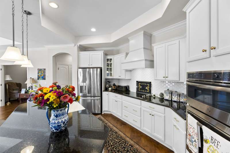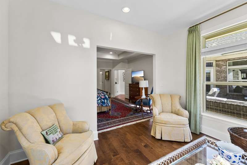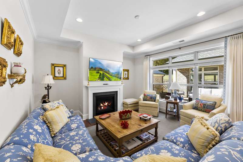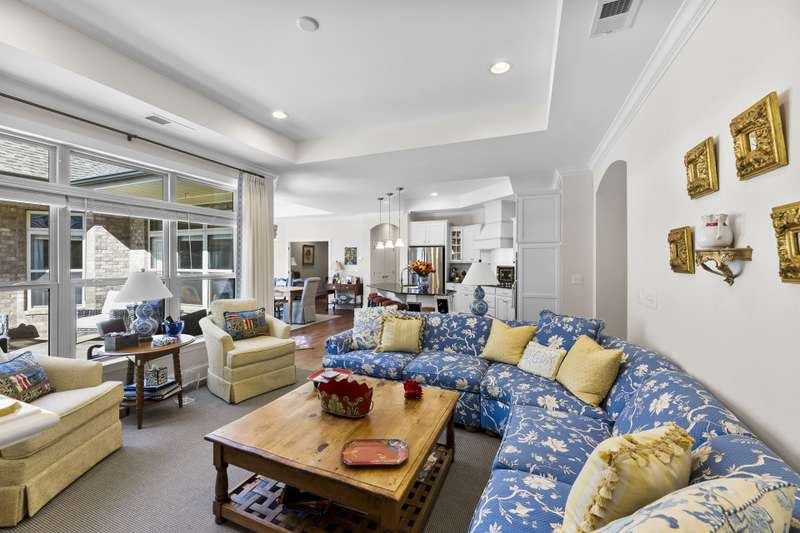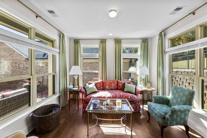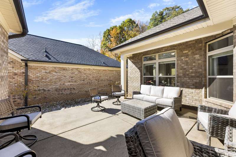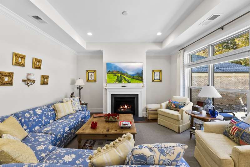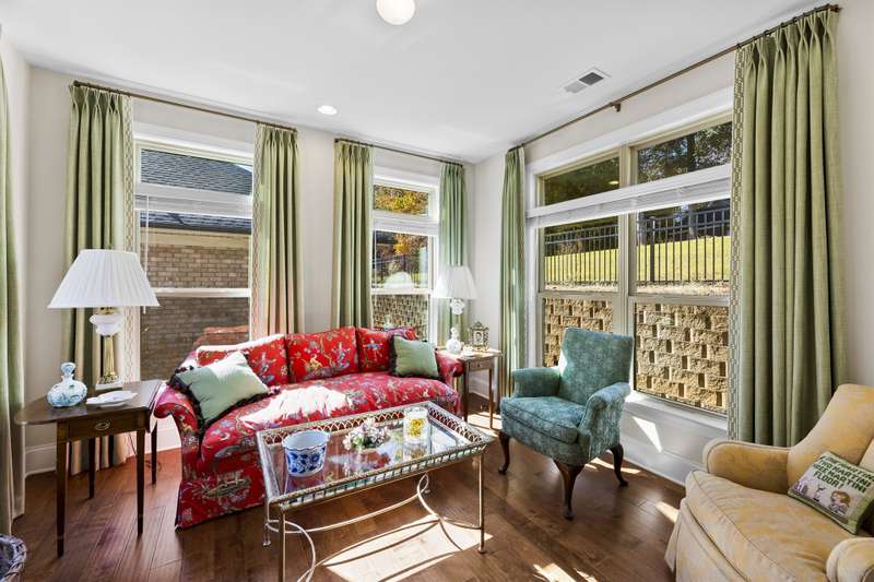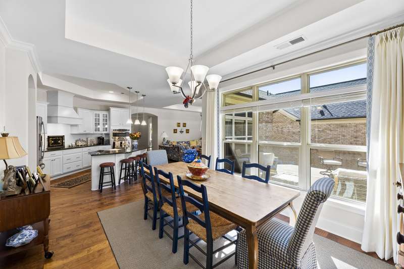 Welcome to peaceful living in one of the area's most popular 55+ neighborhoods! This all-brick beauty offers an inviting open floor plan with soaring ceilings and a warm, comfortable feel throughout. The beautiful open kitchen features a large island with a breakfast bar, perfect for casual dining or entertaining, and flows seamlessly into the spacious dining area.Enjoy cozy evenings by the gas log fireplace in the family room or relax on your private side porch surrounded by quiet charm. The primary suite includes a bright sunroom-style sitting area?perfect for morning coffee or a good book. A flex room off the kitchen can easily serve as a formal dining space, office, or second living area to fit your lifestyle.Here, neighbors become friends, and the community is just the right size?large enough for a vibrant social life yet small enough for easy strolls and close connections.A perfect blend of comfort, convenience, and community?come see why everyone loves living here!