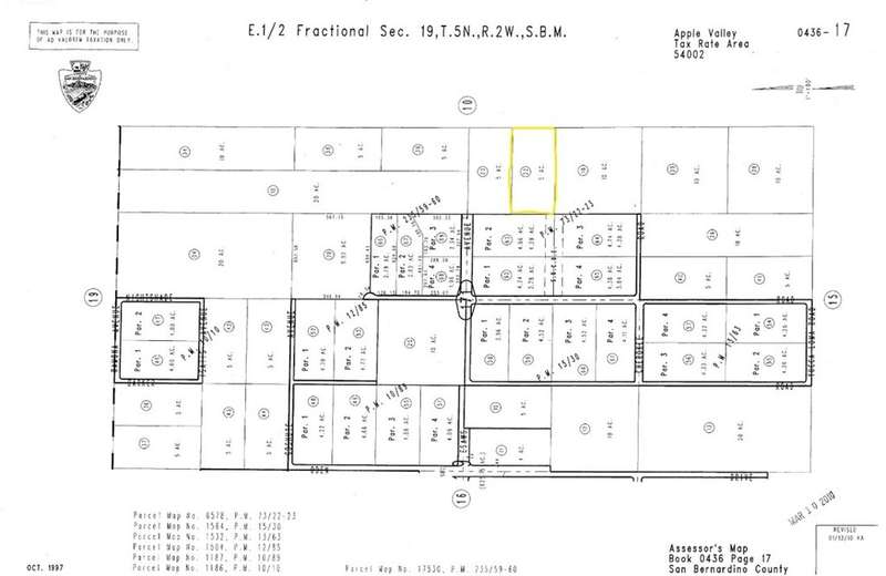 5 Acres in rural area of Apple Valley! Several newer homes in the area. Come build your new custom home on this lot fronting Laguna Seca Dr. Looking north you see large rocky landscape in this highly desired area. Beautiful desert and mountain views! If more land is desired the 5 acres next door is also available. In this area you would need to put in a well for water, septic system and use a propane tank. Owner is willing to carry with half down! APN: 0436-171-22-0000 This property does not have an address assigned. "5 Acres Laguna Seca Drive" is for listing purposes only.