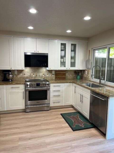 Step into this beautifully updated Campus Commons Home where contemporary design meets comfort and style. The kitchen boasts sleek granite countertops, updated lighting, and newer stainless appliances, and the bathrooms are thoughtfully renovated with modern finishes. Gorgeous Anderson windows and sliders fill the home with natural light, complementing the rich and luxurious vinyl plank flooring. A cozy den provides an ideal space for a home office or a quiet retreat. The newer HVAC system, which is just 2 years old, ensures year-round comfort and efficiency. The calming water feature in the patio and the lush Japanese maple provide a great place to relax. Ideally situated with an interior, convenient location, this exceptional home combines style, function, and sophistication in one exceptional package.
