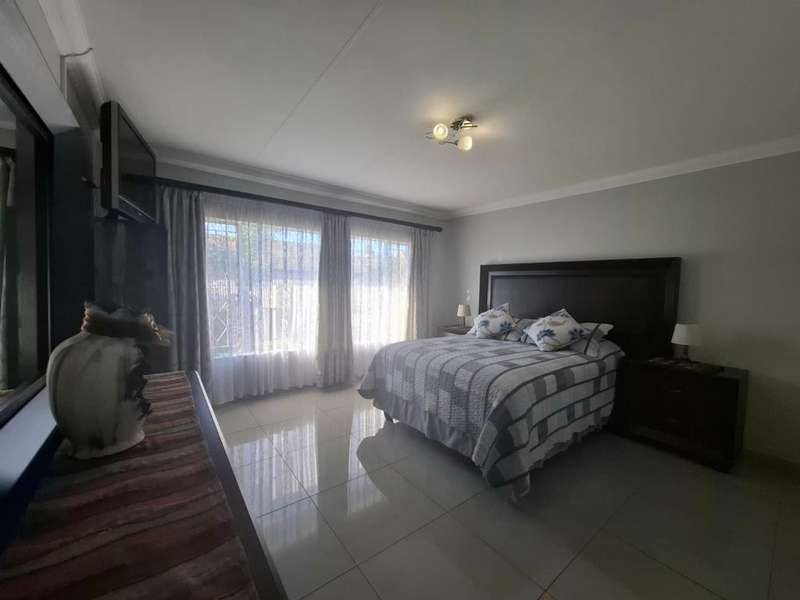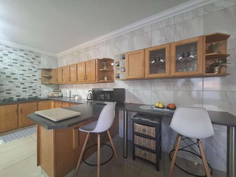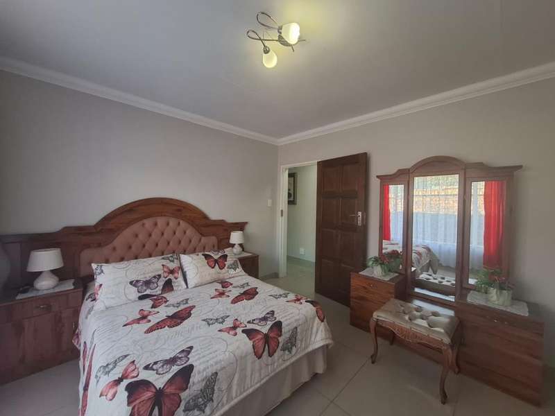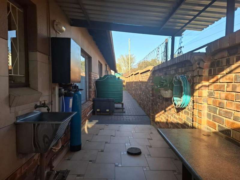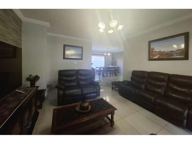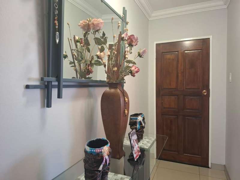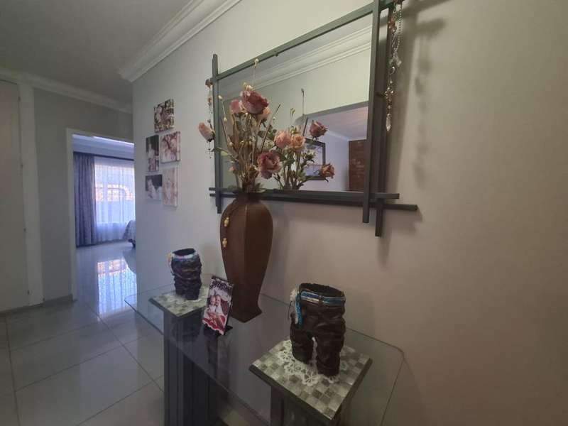 MODERN ELEGANCE | IMMACULATELY MAINTAINED | 4-BEDROOM | BEN FLEUR If you're searching for a home that truly stands out ?Çô this is it! Nestled in a sought-after secure complex in the heart of Ben Fleur, this immaculately maintained 4-bedroom property offers luxurious family living with unmatched style, comfort, and space. The size of the property is 260m?? under roof, on a 588m?? stand. From the moment you step through the modern front door into the welcoming entrance hall, you'll be captivated by the home's seamless design: light-painted walls, contemporary neutral tiles throughout, and stylish lighting create an atmosphere of effortless sophistication. Whether you're entertaining guests or enjoying family time, the living spaces are exceptional: ?Çó A formal lounge or home office offers flexibility and quiet comfort. ?Çó The heart of the home is the open-plan family room, dining area, and stunning kitchen ?Çô all finished to perfection. ?Çó A standout cladding feature wall in the spacious family room adds warmth and flair, with a sliding door that opens to a covered patio with built-in braai ?Çô ideal for indoor-outdoor living. ?Çó The dining area easily accommodates an 8-seater table, making hosting a breeze. The kitchen is a chef?ÇÖs dream: wooden cabinetry, gas stove, space for all appliances, gorgeous modern tile finishes, breakfast nook, and ample storage. A large linen cupboard in the hallway adds even more convenience. All four bedrooms are sunlit, generously sized, and fitted with built-in cupboards. The three guest bedrooms share a beautifully modern full bathroom, while the main suite is a private retreat featuring an abundance of cupboards and a luxurious ensuite with bath and shower. The outside spaces are just as impressive: ?Çó Beautifully landscaped garden with manicured lawns, potted plants, wall-mounted d??cor, and a tranquil water feature. ?Çó A separate tiled multi-purpose room ?Çô ideal as a sunny retreat, hobby room or storage. ?Çó Domestic toilet, double automated garage with direct access to the house, double carport, and an extra side carport ?Çô perfect for guests or trailers. Added extras: ?Çó Gas geyser for energy-efficient hot water in the guest bathroom ?Çó 1,000L JoJo tank with pressure pump This home is spotless, stylish, secure, and simply one of a kind. Don't miss this rare opportunity to own a modern masterpiece in one of Ben Fleur's top complexes. Viewing by appointment only ?Çô contact me today to make it yours!