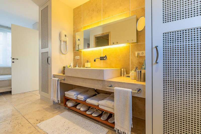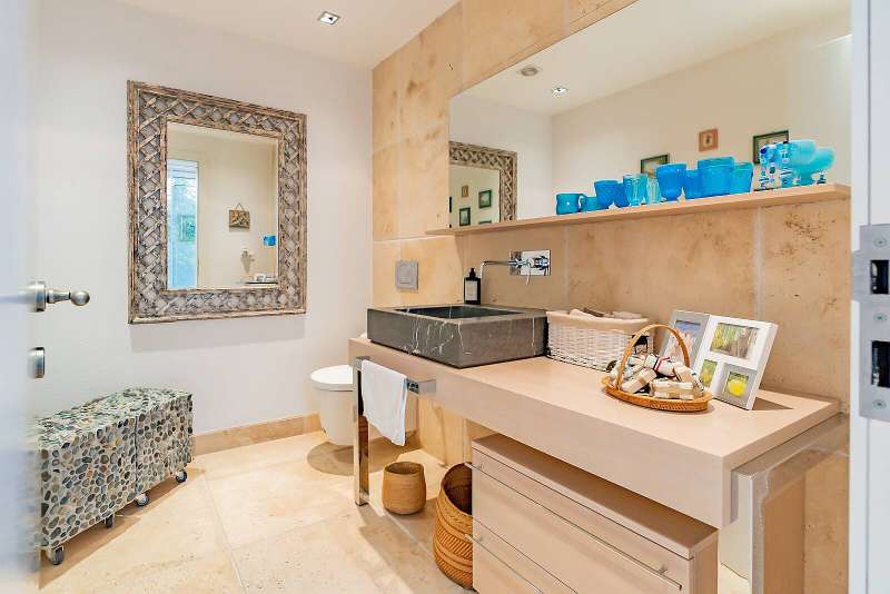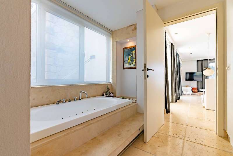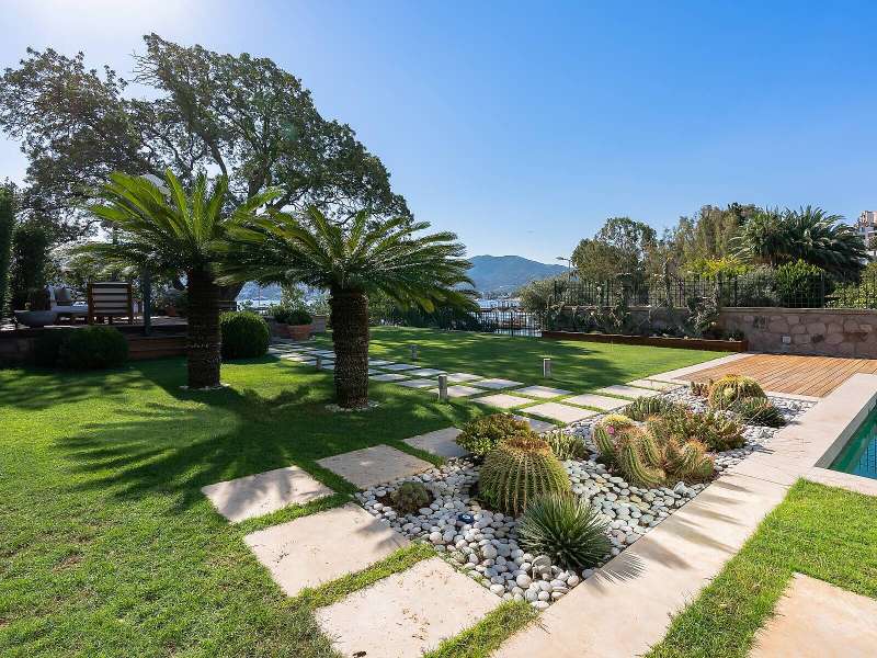 The detached villa is located on the seafront in the least windy bay of Gundogan. The villa has its own dock with a boat vault that you can use whenever you want. The exterior design stands out with cacti and natural marble. A detached garden, private swimming pool, shower area, sauna, relaxation room, jacuzzi, gym, outdoor parking lot, and 2 indoor storages are present features of the villa. There are 3 sections with independent entrances in the villa. In addition, there is a guest house with 1 bedroom and 1 bathroom and an outbuilding with 1 living room, 1 bedroom and 1 bathroom.