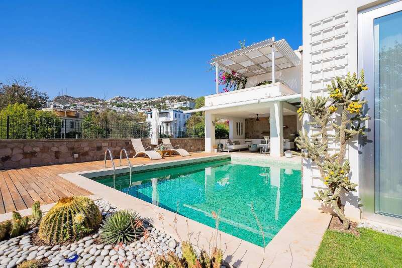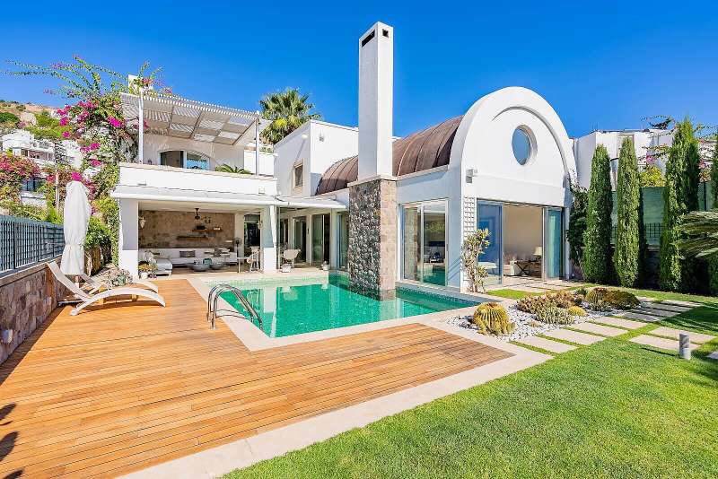 The villa for sale in Bodrum is 9 km to Palmarina, 16 km to Bodrum State Hospital, 25 km to Bodrum district center, historical Bodrum Castle and Mausoleum of Halicarnassus, one of the 7 wonders of the world, and 50 km to Bodrum - Milas Airport.