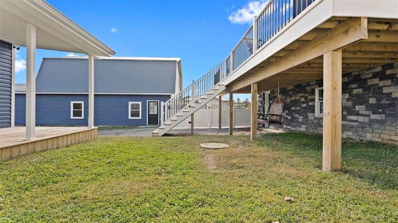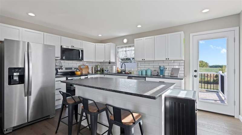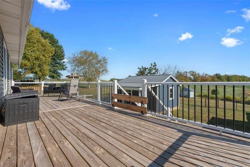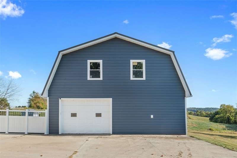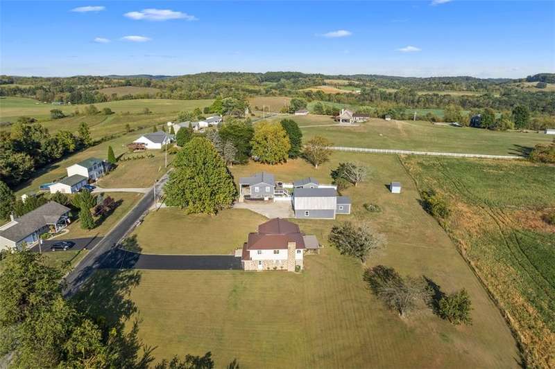 Beautifully updated countryside gem with panoramic views will take your breath away! Thoughtfully redesigned from top to bottom, this spacious split-level home blends modern comfort with rustic charm. Kitchen shines new cabinetry, granite countertops, stainless steel appliances, and a timeless subway tile backsplash accented by warm hardwood flooring. Natural light floods the space, with a glass man door leading to a generous 30x10 back deck, perfect for morning coffee or evening relaxation. Spacious BDs with new ceiling fans and blinds. 2 full bath NEW. Lower Level features durable and elegant nature stone flooring. Custom fence added both charm and security to the property. Massive 50x32 garage with a full second level offers endless storage or workshop potential, while the 20x16 she shed/man cave with a covered front porch is ready to become your personal escape. Whole house generator for peace of mind. Scenic location with breathtaking sunrises/sunsets, move in and enjoy. ALL NEW!