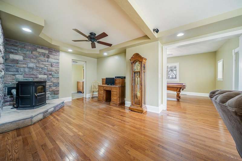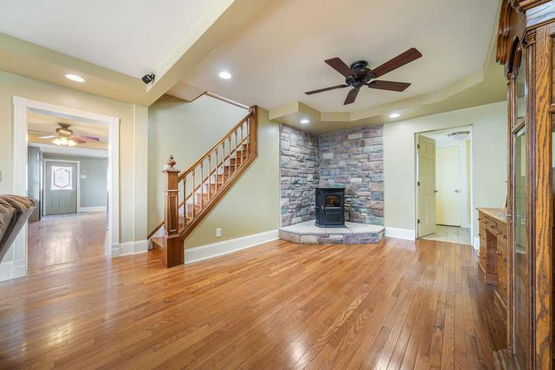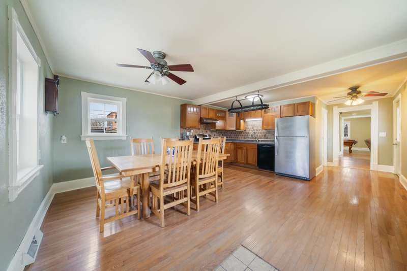 This beautifully updated home features 4 bedrooms, 2.5 bathrooms, and 2,376 sq ft of living space. The main level includes first-floor laundry, a covered front porch, and a 3-car garage with upstairs storage. A heated workshop adds flexibility for projects or additional storage. The fenced yard provides defined outdoor space. Thoughtful updates throughout the home enhance both function and style. Pool table will be left as a convenience to the seller.