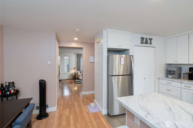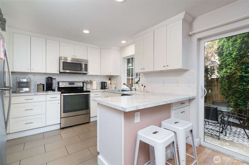 Charming townhome just minutes from enchanting downtown Edmonds or 10 minutes to the Lynnwood Light Rail for commuting. Complete w/ a 1 car garage/workshop plus uncovered parking spot this home shines! Enjoy inviting living room w/wood-burning fireplace, laminate floors on the main & cute under stairs office nook. Light & bright updated kitchen w/Stainless appliances, tile floors, makes cooking/entertaining a breeze. Step out the slider to your back patio oasis! Updated half bath completes the main floor. Upstairs you will find a large primary bedroom w/dual closets, refreshed full bath, second bedroom for versatility & Laundry closet. W & D to remain. Nicely landscaped & maintained this home truly shines! Welcome home! Edmonds School Dist.