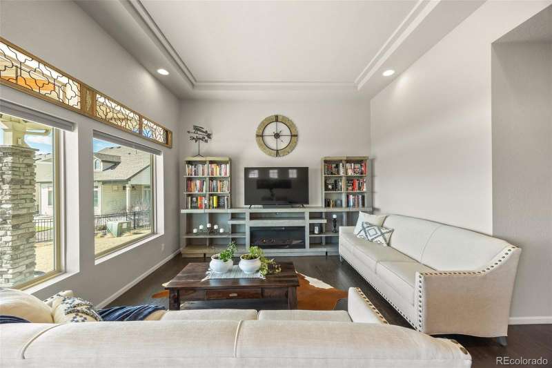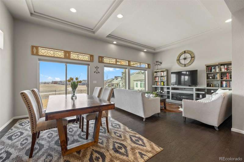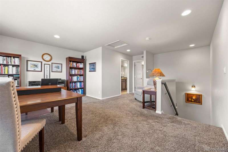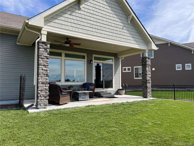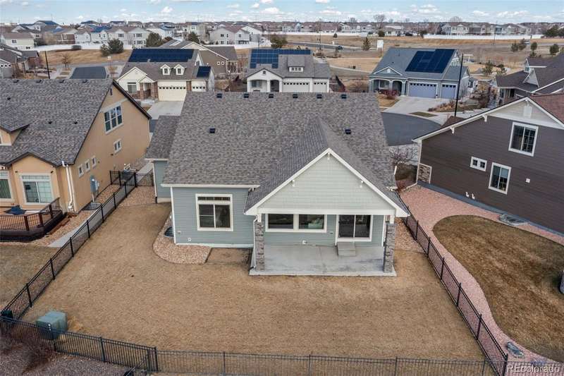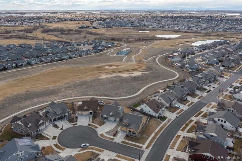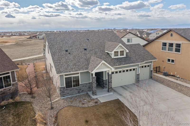 Situated in a peaceful, well-maintained 55+ community, this beautiful home offers a lifestyle of relaxation and connection. Residents enjoy exclusive access to two clubhouses with a wealth of amenities, the Community Lodge features social spaces, an exercise facility, and pickleball courts, while the Community Clubhouse offers additional fitness facilities, pools, and moreall included with ownership. The home has been thoughtfully maintained by its original owners and features a brand-new roof with upgraded Owens Corning Class 4 impact-resistant shingles. Designed with energy efficiency in mind, this Green-Certified home (built in 2017) offers views of the Front Range from both levels. Situated on a quiet cul-de-sac with sidewalks and no through traffic, this home provides both privacy and a strong sense of community. Close to E-470 and just 8 miles from Central Park, it offers easy access to shopping, dining, and travel routes. Step inside to find a bright and inviting floor plan complemented by high ceilings and oversized Colorado-manufactured picture windows that flood the space with natural light. Three large bedrooms and a spacious loft provide flexibility. The primary suite has been beautifully remodeled with quartz countertops, soft-close drawers, and vanity. Fresh high-density carpet enhances the primary bedroom, complete with a whisper-quiet ceiling fan. Downstairs, the expansive 1,000+ sqft. unfinished basement offers incredible potential, featuring high ceilings, four large window wells, and a bathroom rough-in. Outside, a covered 200+ sq. ft. patio overlooks the golf course, offering a serene retreat with roll-down sunscreens and an overhead ceiling fan for year-round enjoyment. Additional highlights include a built-in radon mitigation system, a 3-car high-clearance garage with an extra-deep bay, and an upgraded kitchen. With its ideal location, thoughtful upgrades, and access to top-tier amenities, this home is a rare find in an exceptional community.