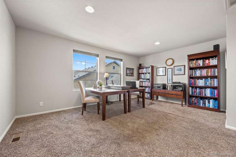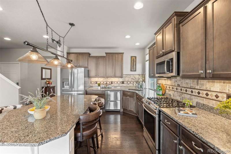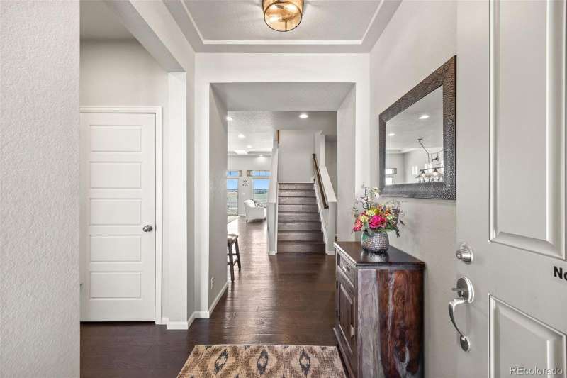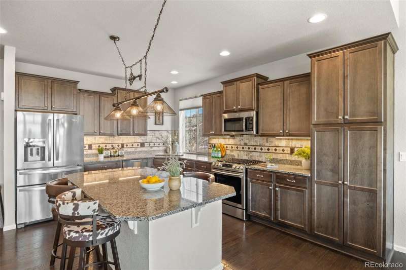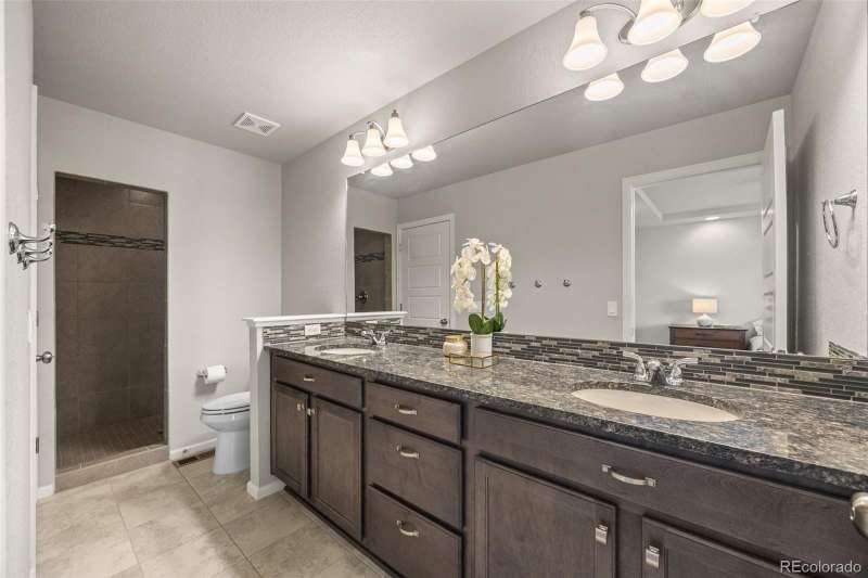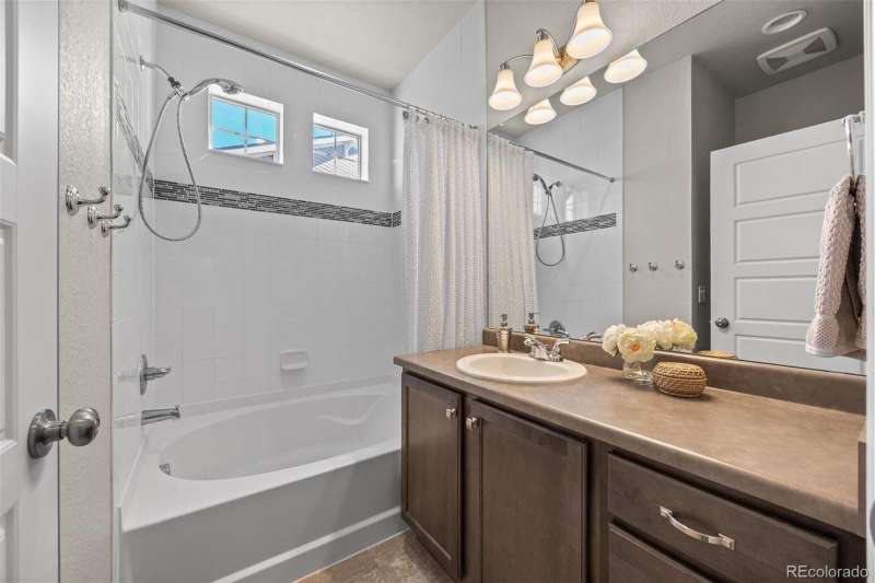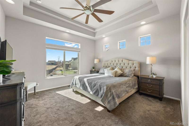 Situated in a peaceful, well-maintained 55+ community, this beautiful home offers a lifestyle of relaxation and connection. Residents enjoy exclusive access to two clubhouses with a wealth of amenities, the Community Lodge features social spaces, an exercise facility, and pickleball courts, while the Community Clubhouse offers additional fitness facilities, pools, and moreall included with ownership. The home has been thoughtfully maintained by its original owners and features a brand-new roof with upgraded Owens Corning Class 4 impact-resistant shingles. Designed with energy efficiency in mind, this Green-Certified home (built in 2017) offers views of the Front Range from both levels. Situated on a quiet cul-de-sac with sidewalks and no through traffic, this home provides both privacy and a strong sense of community. Close to E-470 and just 8 miles from Central Park, it offers easy access to shopping, dining, and travel routes. Step inside to find a bright and inviting floor plan complemented by high ceilings and oversized Colorado-manufactured picture windows that flood the space with natural light. Three large bedrooms and a spacious loft provide flexibility. The primary suite has been beautifully remodeled with quartz countertops, soft-close drawers, and vanity. Fresh high-density carpet enhances the primary bedroom, complete with a whisper-quiet ceiling fan. Downstairs, the expansive 1,000+ sqft. unfinished basement offers incredible potential, featuring high ceilings, four large window wells, and a bathroom rough-in. Outside, a covered 200+ sq. ft. patio overlooks the golf course, offering a serene retreat with roll-down sunscreens and an overhead ceiling fan for year-round enjoyment. Additional highlights include a built-in radon mitigation system, a 3-car high-clearance garage with an extra-deep bay, and an upgraded kitchen. With its ideal location, thoughtful upgrades, and access to top-tier amenities, this home is a rare find in an exceptional community.