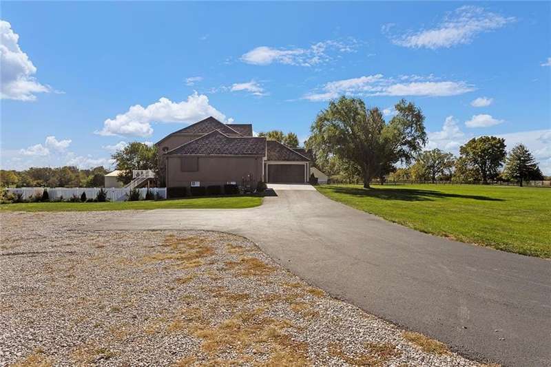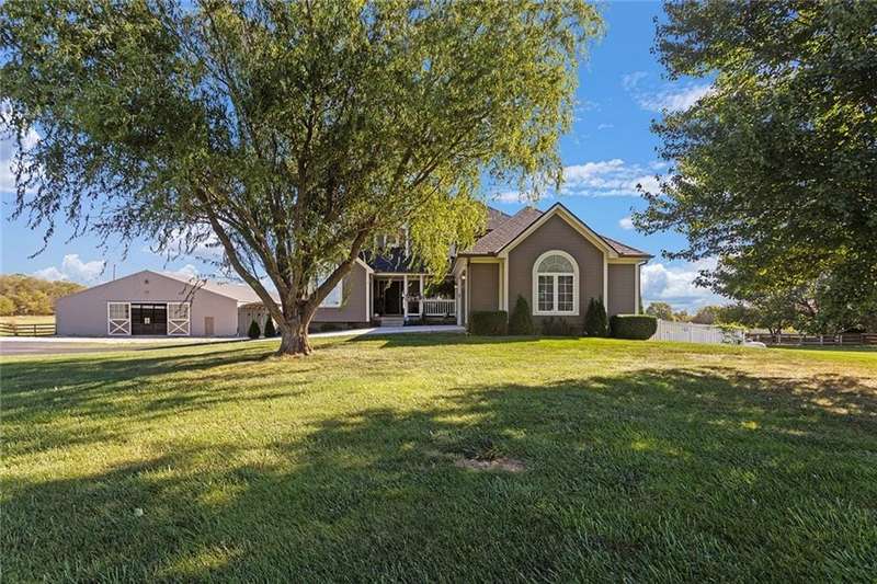 Welcome to your dream equestrian retreat where comfort, convenience, and country living come together! This beautiful 4-bedroom, 3.5-bath, 1.5-story home offers 3,000 square feet of well-maintained living space, perfectly situated on 10 scenic acres in the highly desirable Lees Summit School District.As you step inside, youll be greeted by an inviting open layout filled with natural light and large windows that showcase stunning views of the property. The spacious great room and kitchen overlook the back acreage, creating the perfect setting to enjoy peaceful mornings. You are sure to enjoy sunset views from the covered front porch. The finished walkout basement includes a second kitchen, providing flexibility for guests, extended family, or even potential income-producing opportunities.Horse lovers will appreciate the exceptional equestrian facilities. The property includes an enclosed 80 x 110 riding arena attached to a 40 x 50 barn with a tack room and horse stalls. The acreage is fenced and cross-fenced, ready for your horses or livestock.Enjoy the privacy of rural living while staying just 10 minutes from town, with easy access to major roads, shopping, and dining. Whether youre looking for a personal retreat, a horse property, or an income-producing acreage, this home has it all.Key Features:4 Bedrooms | 3.5 Bathrooms | 3,000 Sq. Ft.Finished Walkout Basement with 2nd Kitchen10 Acres | Fenced & Cross-Fenced80 x 110 Enclosed Riding Arena40 x 50 Barn with Tack Room & Horse StallsLees Summit Schools10 Minutes from Town | Easy AccessIdeal Equestrian or Horse PropertyYour next chapter of country living with modern comfort awaitsschedule your private showing today!