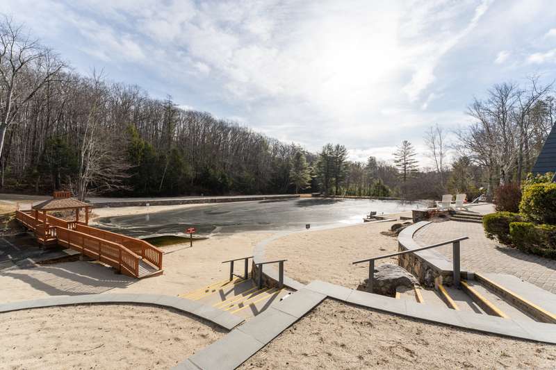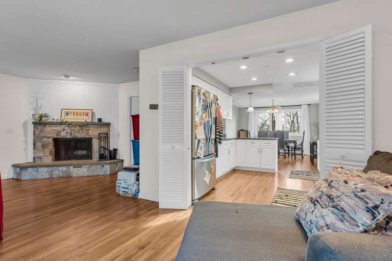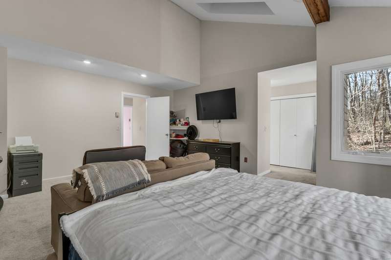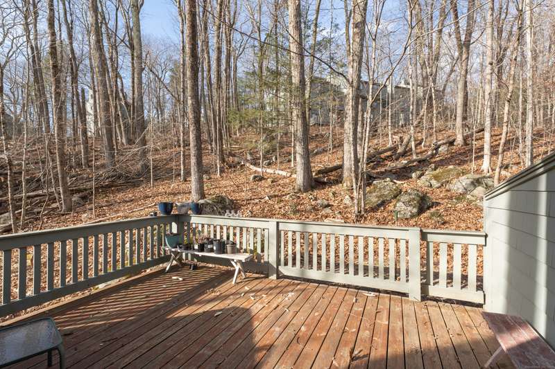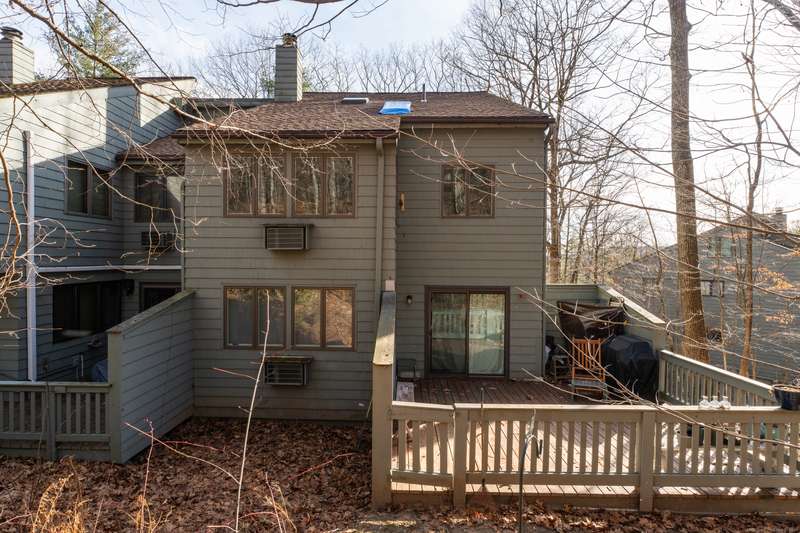 Welcome to 390 Trailsend Dr., a captivating end-unit townhome in the Lakeridge community, where resort-style living meets the beauty of nature. This bright and spacious 3-story "Lookout" model offers an open floor plan with vaulted ceilings, skylights, and hardwood floors. The updated kitchen features sleek granite countertops, stainless steel appliances, and crisp white cabinetry, all flowing seamlessly into the dining and living areas, complete with a charming fieldstone fireplace-ideal for cozy nights in. Upstairs, the primary bedroom suite offers a serene retreat with a walk-in shower, while two additional bedrooms and a full bath provide ample space for family or guests. The top floor reveals a fourth bedroom with wall-to-wall carpeting and vaulted ceilings, perfect as a private escape or office space. Enjoy outdoor living on the expansive deck, perfect for entertaining or simply relaxing in the warmer months. Situated on 243 acres bordered by nature preserves and offering an arra