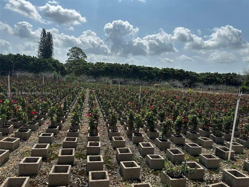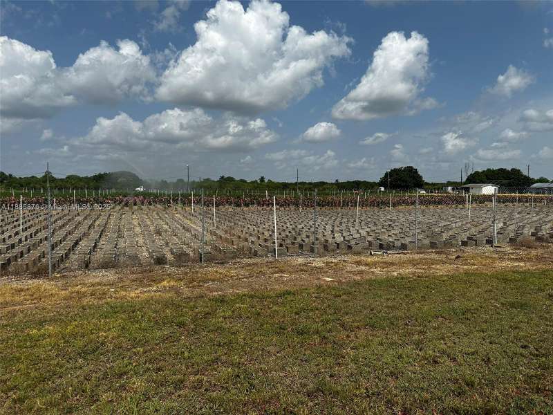 Fully fenced working plant nursery with on-site irrigation, GM Diesel pump, underground piping, multiple sections, sprinklered, includes 1000's cinder blocks, shade house, and more. Electric on site. Ready to start your business. Located in prime Redland with access to major thoroughfares. Build your home with guest house or many other uses as allowed by Miami Dade County agricultural zoning.