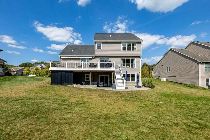 Award-winning DEXTER Comm Schools+lower Hamburg Twsp taxes!!! This gorgeous home still feels like new construction but comes w/an impressive list of quality post-occupancy upgrades: beautiful in-built cabinetry & French doors in front study/office; striking wainscoting in formal DR & hallways; custom fireplace mantle & surround, flanked by added cabinetry & floating shelves; fully finished & HUGE walk-out LL w/French doors leading to 5th (egress) BR, 3rd full BA w/lovely herringbone tile floor & seamless glass step-in shower; very large composite deck w/retractable awning for lofted southern views, stairs to LL covered patio w/water tight ceiling & extended open-air patio area; in-ground downspouts; sprinkler system & mature landscaping; concrete driveway w/brick paver edging; radon system. All this plus a gourmet kitchen w/sleek granite counters, rich-toned HW flooring, 2nd flr laundry, 200 amp electric panel, infrared sauna, play structure, fresh paint... An incredible value!