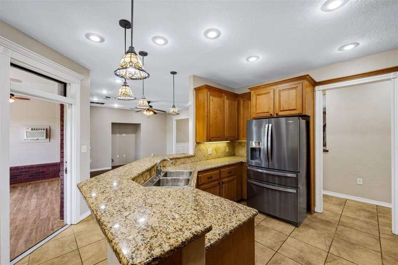 This stunning 2 story brick home, located in the prestigious Valley View Estates, offers the perfect blend of space, comfort, and countryside charm, set on 2.5 acres with breathtaking views of the Wichita Mountains. Boasting five true bedrooms and three and a half bathrooms, the home features a gorgeous staircase entrance, three spacious living areas and an enclosed sunroom for year-round enjoyment. The primary downstairs suite offers a luxurious whirlpool tub, while a Jack and Jill bathroom upstairs and walk-in closets for every bedroom add convenience and functionality. Outside, you'll find an in-ground pool for summer fun, an in-ground storm cellar for peace of mind, and a detached one-car garage workshop. Located just outside city limits, this move-in ready property provides both privacy and accessibility. Priced at $415,000, this beautiful home is ready for its next chapter. To view this property, reach out to Janet Wise at 580-591-3479 or contact your existing real estate agent.