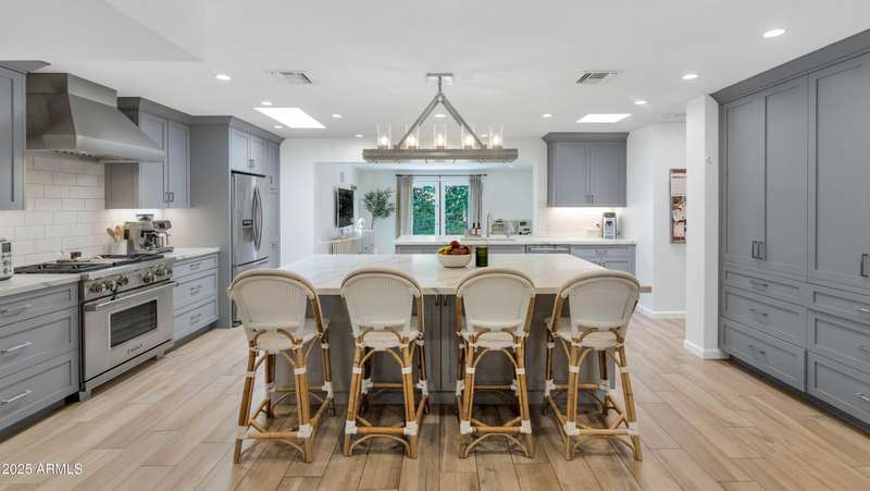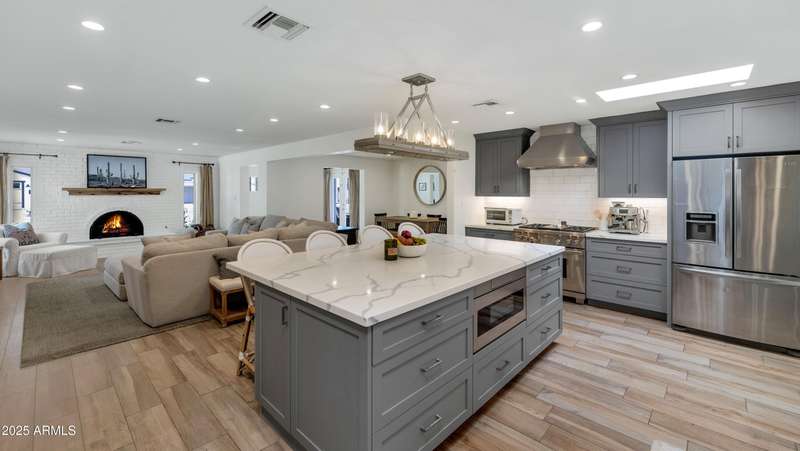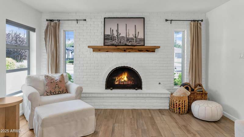 Welcome to this warm and inviting 3-bedroom, 3-bath home in the heart of Arcadia Lite, one of Phoenix's most beloved neighborhoods for families. With a split floor plan and spacious layout, this home is designed for both everyday living and making lasting memories. The beautifully remodeled kitchen (2017 by GM Hunt) features a large island, premium appliances, and custom cabinetry perfect for family meals, homework time, or hosting friends. A charming brick fireplace anchors the cozy living area, creating a perfect space for movie nights or game days. The master suite includes a walk-in closet and a stylish, updated bathroom. Each bedroom offers comfort and space, and with three full bathrooms, there's room for everyone. Step outside and enjoy a quiet, family-friendly street just a short walk to local favorites like LGO, Postino, Chop Shop, and Trevor's. Whether it's bike rides to brunch or evening walks to grab a treat, this home offers the best of neighborhood living.
