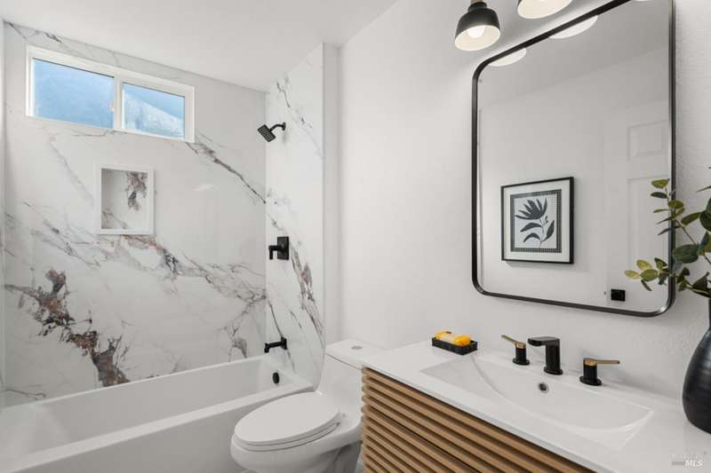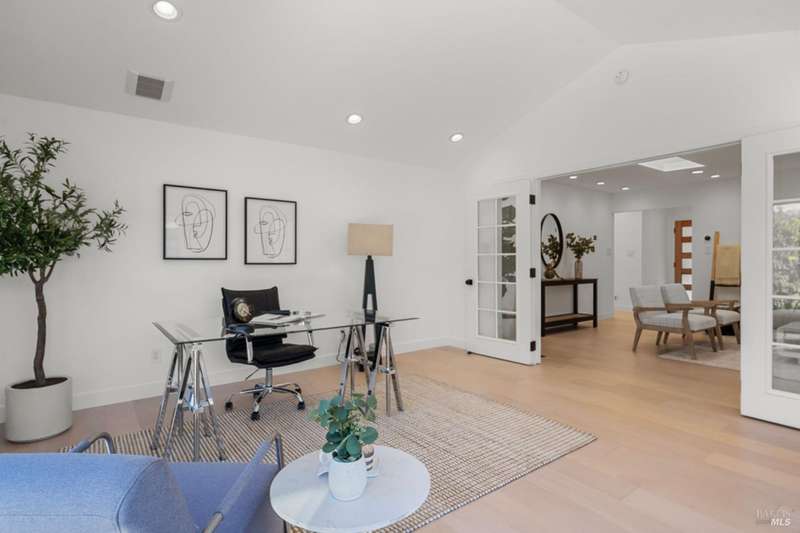Tucked in Loma Verde, one of Southern Novato's most desirable neighborhoods, every detail was considered in updating this turnkey home inside and out. All new roof, African mahogany front door & patio ensure the exterior spaces are comfortable & stylish, enhanced by mature fruit and shade trees and drought-tolerant professional landscaping. The interior opens to an airy, open-concept gathering space that features vaulted ceilings, Brazilian Oak hardwood floors, solar-powered smart skylights and walls of windows that flood the interior with natural light. Brand-new kitchen features striking two-tone Shaker-style cabinetry, new Forno designer appliances and Kraus sink & fixtures. Both bathrooms have been completely reimagined with a spa-inspired aesthetic & Kohler fixtures. Oversized primary suite offers a quiet retreat with walk-in closet & stunning en suite bath with expansive, glass-enclosed shower. Fresh Benjamin Moore interior & exterior paint give the home a crisp, clean look. Smart home updates, Level 2 Tesla charger, 17 owned solar panels and energy-efficient upgrades provide added peace of mind. Blocks from top-rated Loma Verde Elementary, a California Distinguished School, and steps away from hiking trails, Pacheco Plaza, Nugget Market and the Marin Country Club.