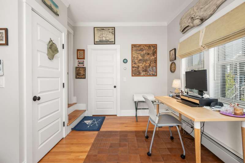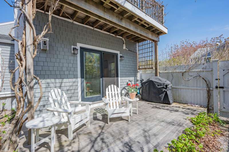 Nestled in Provincetown's West End, this nicely appointed two-bedroom, two-bath freestanding cottage blends Cape Cod charm with thoughtful modern updates. Completely rebuilt in 2013 and enjoyed by a single owner, the home showcases quality craftsmanship with features like hardwood floors throughout, crown molding, and charming 5-panel cottage-style interior doors. The well-designed kitchen features quartz countertops, stainless steel appliances, custom lightly stained cabinetry, and a serving island with dining space--perfect for entertaining or enjoying a cozy evening at home. Just a few steps down, the living area is anchored by a gas fireplace and opens to the outside through sliders to a spacious deck and beautifully landscaped, fenced-in yard. A cozy guest bedroom with garden views and a full bath with stacked washer/dryer complete the main floor. Upstairs, the primary suite spans the entire 2nd level and offers a serene retreat with a flexible work/dressing area, walk-in closet,