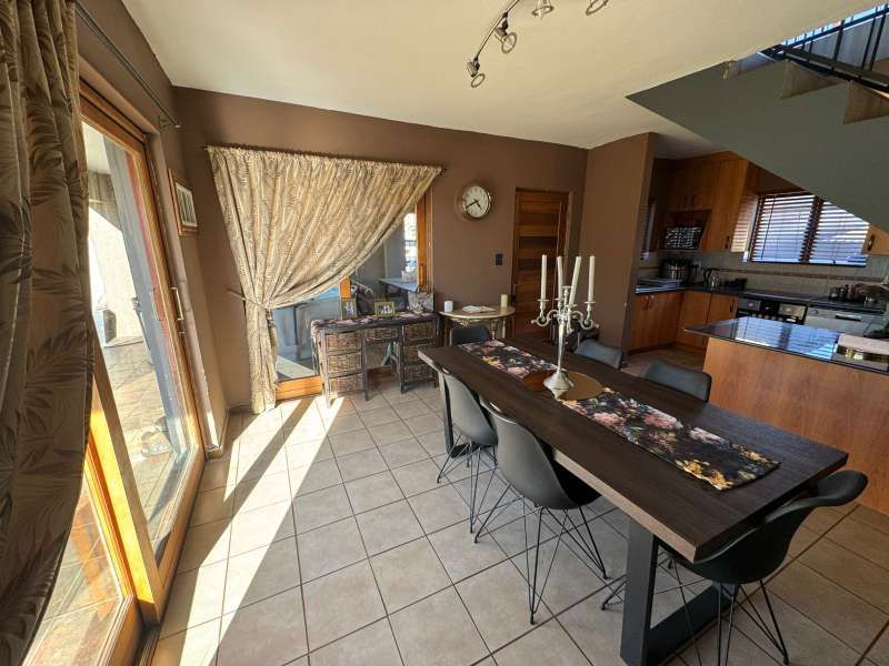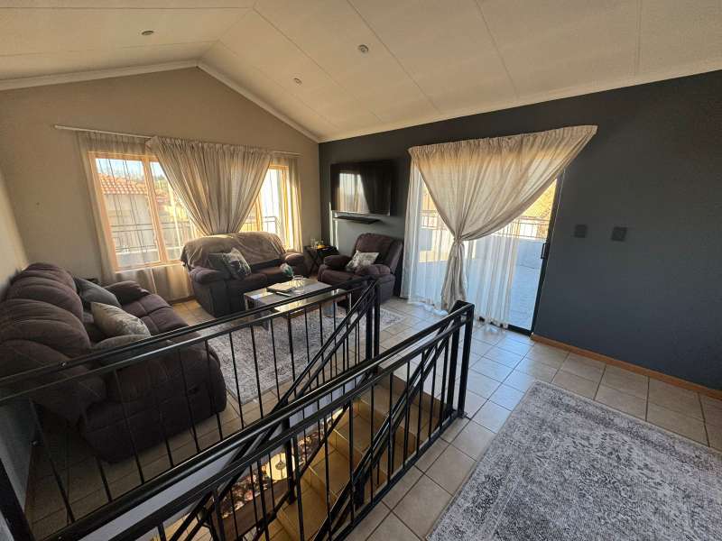 This well-designed 3-bedroom, 2-bathroom duplex, situated in the popular Savanna Estates, offers the perfect combination of comfort, practicality, and security – ideal for families or professionals seeking a lock-up-and-go lifestyle. Downstairs features three spacious bedrooms, all fitted with built-in cupboards. The main bedroom includes a modern en-suite bathroom, while the other two bedrooms are serviced by a neat, full family bathroom. The open-plan kitchen and dining area are also located downstairs, offering a functional and welcoming space for family meals and entertaining. The kitchen is finished with ample cupboard space, quality fittings, and room for appliances, making everyday living a breeze. Upstairs, you’ll find a generous and private living room – a perfect space to unwind, entertain, or work from home. The elevated position allows for great natural light and adds an extra sense of space and separation from the rest of the home. This property is fitted with practical extras including a private water reserve with pump, ideal for those unexpected outages, and a CCTV camera system that enhances your peace of mind alongside the estate’s 24-hour security. Savanna Estates is a well-maintained, secure complex that offers residents a peaceful lifestyle close to schools, shopping centres, and main transport routes. This duplex is move-in ready and packed with features – don’t miss your chance to make it your own. Contact us today for a private viewing