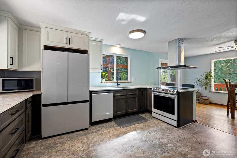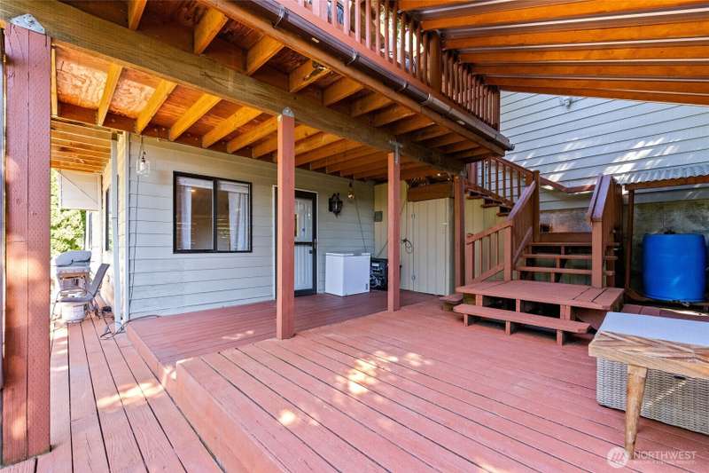 New Price! Located just blocks from the heart of historic downtown Steilacoom, this exceptional home offers not only a prime location but also a fully finished lower-level ADU — perfect for rental income or multi-generational living. Enjoy peekaboo views of the Sound and vibrant western sunsets from the stunning two-story deck, opening onto the secluded backyard with mature trees. Inside, you'll find hardwood floors, large windows, two fireplaces, and a stunning updated kitchen designed for modern living. Central A/C, a two-car attached garage, and a spot in the highly regarded Steilacoom Historical School District round out the list of must-have features. A rare opportunity in one of the South Sound’s most charming waterfront communities.