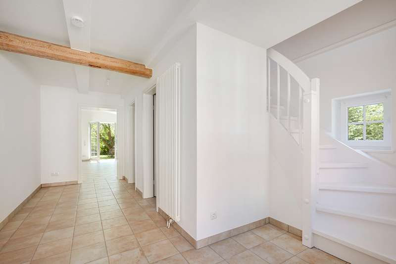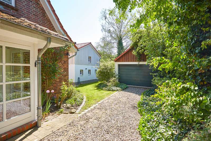 North German coziness in the Holstein Lake District - your luxurious retreat. Living and working - hidden luxury living space with studio building. Imagine waking up in absolute peace and quiet, surrounded by the unspoiled beauty of the Holstein Lake District. This exclusive semi-detached house with real division offers you exactly that and much more. It combines upscale living comfort with an incomparable feeling of northern German coziness that you can experience anew every day. Hidden luxury and North German craftsmanship: From the outside, the house blends harmoniously into its rural surroundings. But behind the façade lies luxury that will exceed your expectations. Modernized burglar alarm systems ensure your security, while the upscale furnishings leave nothing to be desired. A home that speaks of craftsmanship: As you enter the open, integrated vestibule with handmade wardrobe, you immediately sense the attention to detail. High-quality tiles, modernized in 1998 and 2022, lend the house timeless elegance. Vertical radiators and Dornbracht fittings with shower pipes in the bathrooms set luxurious accents. Rooms that tell stories: Handcrafted joinery such as window sills, door sills, fitted kitchen fronts and a built-in wardrobe in the bedroom wing are evidence of exquisite craftsmanship. Bathrooms adapted to the floor plan and a cozy pitch pine wood flooring on the upper floor create a warm, inviting atmosphere. Solid wooden doors and the charming "Klönschnacktür" door to the inner courtyard emphasize the rural charm. North German coziness: The Klönschnacktür is more than just a door; it symbolizes the North German tradition of cosy get-togethers. It allows you to meet up with friends and neighbors for a cosy "Klönschnack" (chat) without having to open the door completely - perfect for sociable afternoons or spontaneous conversations. Your private paradise: The separate guest house, on two floors with its own bathroom, offers additional space for guests or creative projects. Enjoy the patio courtyard, which is difficult to see into, and the spacious plot, which offers you complete privacy. A double garage offers ample space for your vehicles. A home to dream about: The room layout will delight you with a split-level living area, a kitchen and a bathroom on the first floor as well as three bedrooms and another bathroom on the upper floor. The insulated loft offers additional usable space. Particular attention was paid to excellent lighting conditions and the use of harmonious, sustainable and uncontaminated materials. Whether as a second home, vacation home or for nature lovers - this property invites you to dream and offers you a life in harmony with nature. Immerse yourself in a world where comfort and North German coziness go hand in hand. Arrange a viewing today and be enchanted by this unique property!