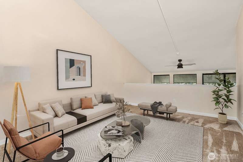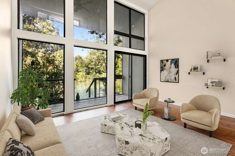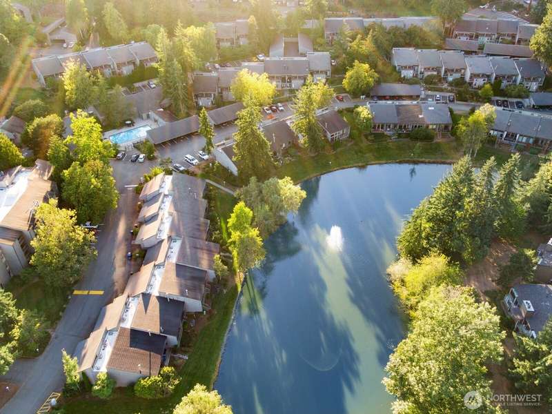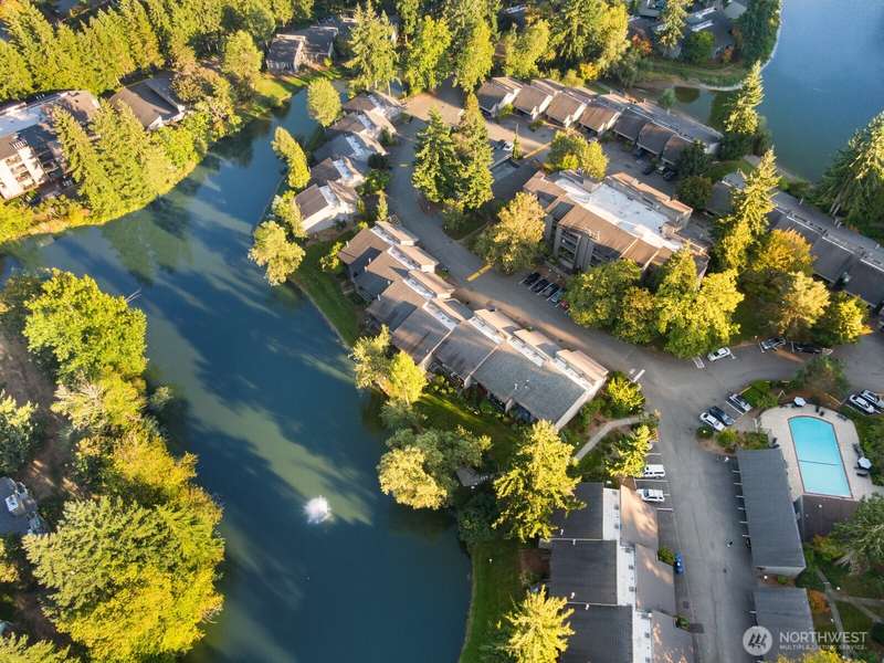 Discover resort-style living in the desirable Sixty-01 community, perfectly situated between Bellevue and Kirkland in the heart of Redmond. This spacious loft sits directly on the water, offering tranquil views and a new water feature just outside your door. The community provides 4 pools, a fitness center, clubhouse lounge, on-site bar, walking trails, and beautifully maintained grounds, all designed for relaxation and convenience. Just seconds from the Bellevue Golf Course and with quick freeway access, the location is unbeatable—close to shopping, dining, parks, and entertainment. Strong HOA reserves and a well-managed association add peace of mind, making this home the perfect blend of comfort, lifestyle, and Eastside convenience.