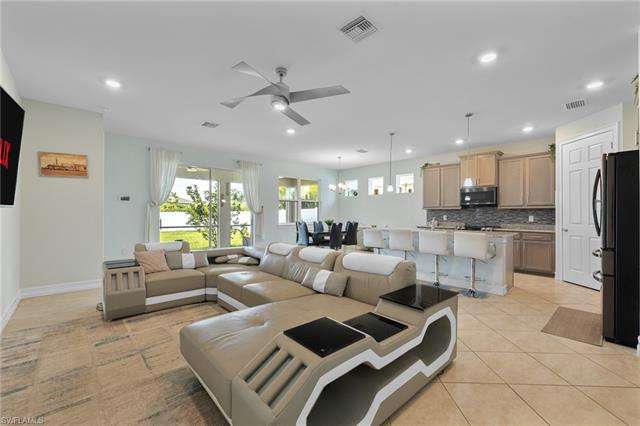 Welcome home! This beautiful property located in the gated community of Entrada in Cape Coral is now available. Features 4 bedrooms, 2 bathrooms, and over 2,000 square feet of living space, This popular model Delray was built in 2020 by DR Horton. The open kitchen seamlessly connects to the living and dining area, perfect for hosting or everyday living, with black stainless steel appliances, granite countertops, large covered lanai that takes you to a large patio, and complete fencing with plenty of room for a pool. Other upgrades include a walking attic with easy access and gutters throughout. Enjoy numerous amenities, including a resort-style pool, kids' splash pad, clubhouse, fitness center, tennis/pickleball courts, bocce, & kids' playground. Low HOA fees, no CDD fees, NO FLOOD insurance required. Conveniently located with easy access to downtown Ft. Myers, I-75, shopping centers, and so much more. Schedule your appointment today.