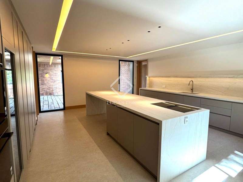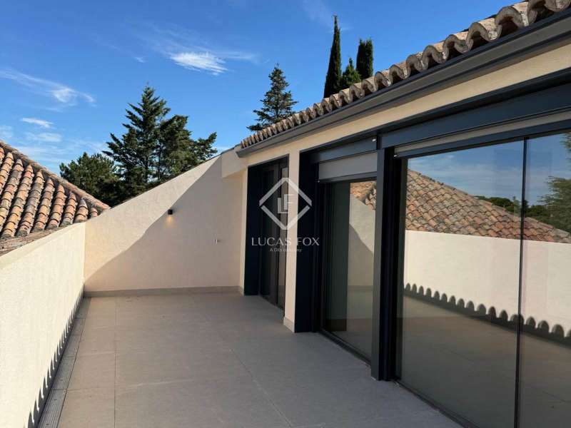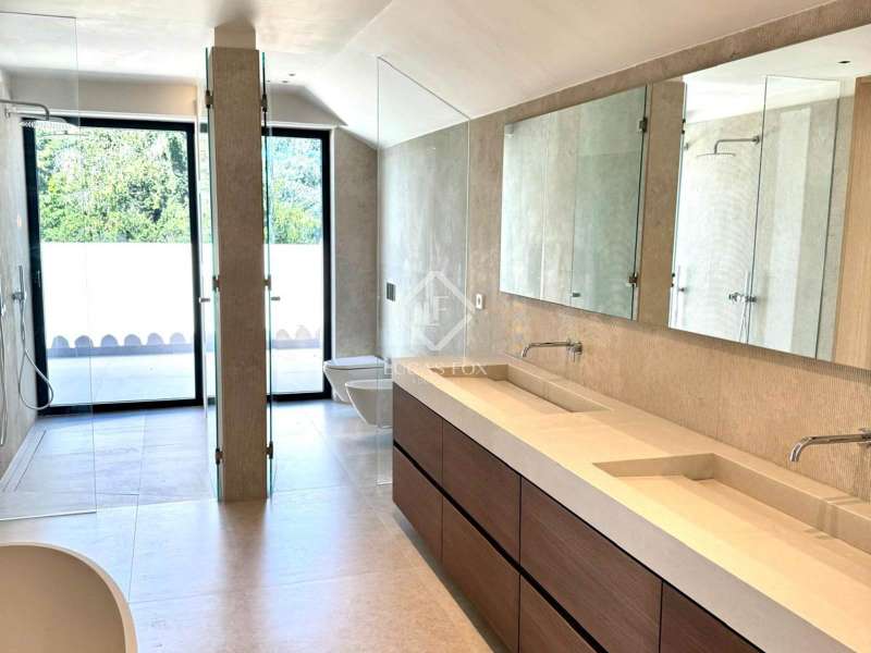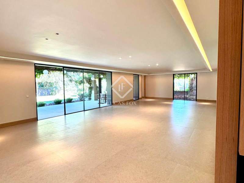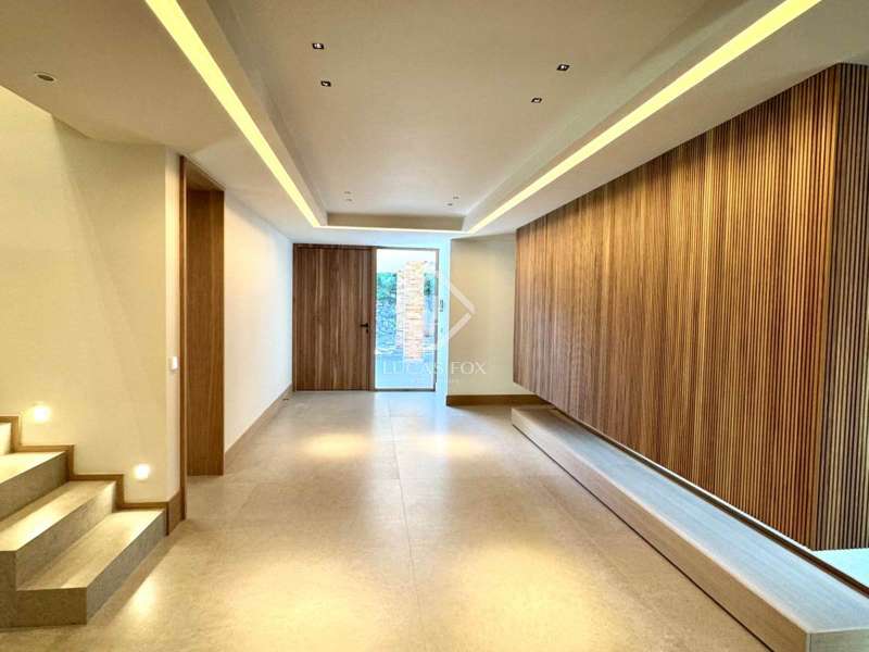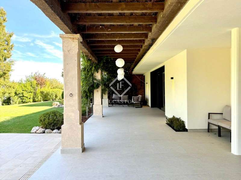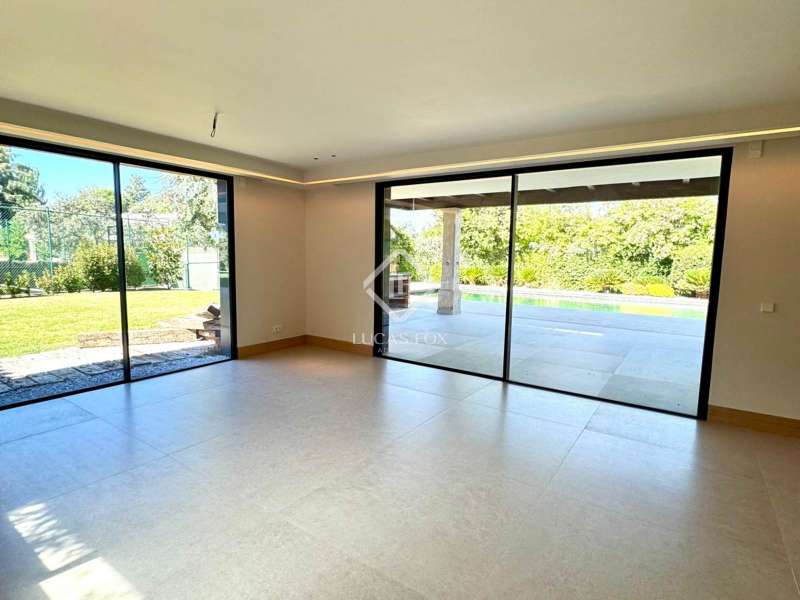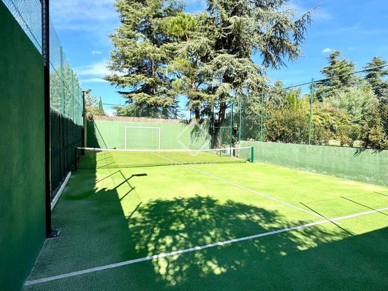 Lucas Fox presents this imposing, fully renovated detached villa in La Moraleja. With 1,600 m² of built area on a beautiful 3,250 m² plot , this exclusive property is located in one of the quietest and most private areas of La Moraleja. Its architecture and interior design stand out for their timeless, elegant, and serene style, designed to offer comfortable living on a single floor. On the main floor are the main rooms and family bedrooms: - Entrance hall, living/TV room and a spacious living room with fireplace and direct access to a spectacular covered porch with beautiful views of the garden and pool. - Large dining room , ideal for 16 guests. - Spacious and functional kitchen, connected to a charming courtyard with a fountain. - Five large children's suites, all with private bathroom, large dressing rooms and spectacular garden views. - Complete service area with three bedrooms, two bathrooms and a separate living room. The upper floor is dedicated exclusively to the main bedroom, which features two dressing rooms, a fireplace, a private terrace and a bathroom with a sauna. In total, the property has six master bedrooms with six bathrooms, as well as three bedrooms and three bathrooms for staff. The basement houses a spectacular recreation room with a cinema, bar, and billiards table, a modern gym, a full bathroom , and a large garage with capacity for several vehicles. The garden, along with the covered porch, the swimming pool and the paddle tennis court, forms an exterior environment of great beauty and functionality. Its facilities include: - Oil heating using radiators. - Elevator connecting the three floors. - Advanced security system. An exceptional property that combines elegance, privacy, and comfort, ideal for enjoying the most exclusive lifestyle in La Moraleja.