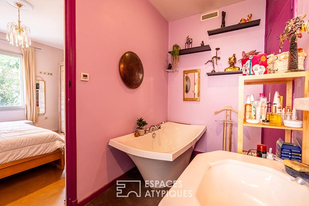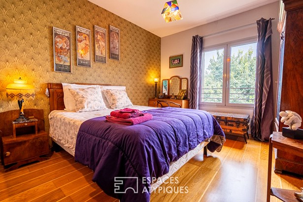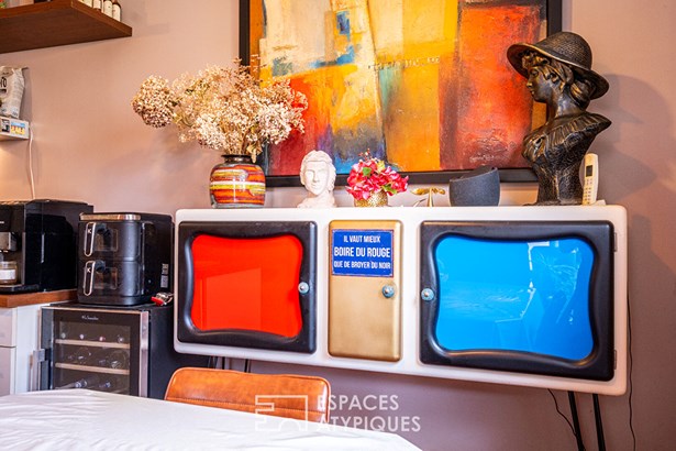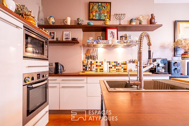 Spread over two levels, it offers a vast living area of more than 42 m2, bathed in natural light thanks to a central skylight. The living room, enhanced by a wood-burning stove and a metal staircase, elegantly blends industrial design with authenticity. The 19 m2 kitchen opens onto a private terrace and the rear garden, creating a delightful inside-outside lifestyle. A master suite completes this first level.