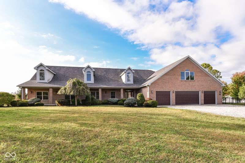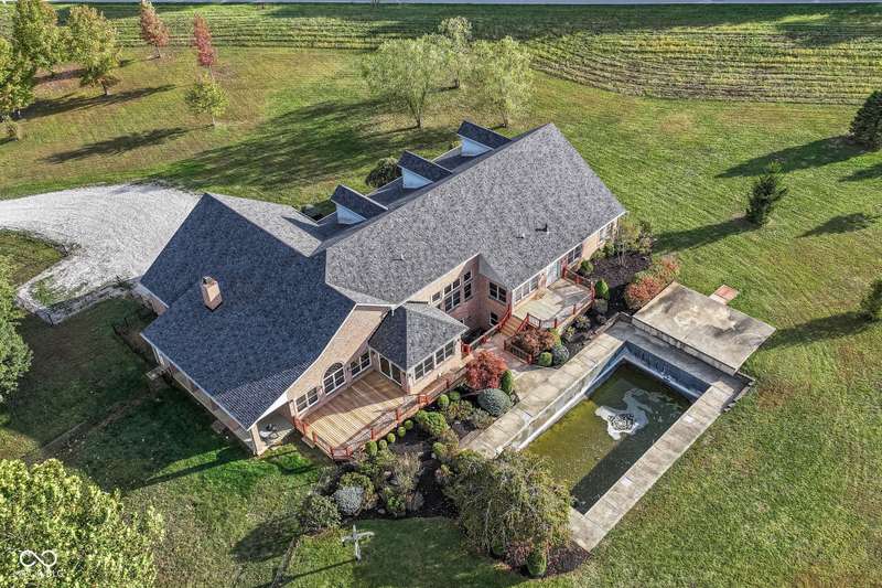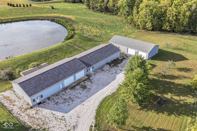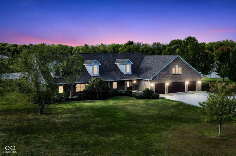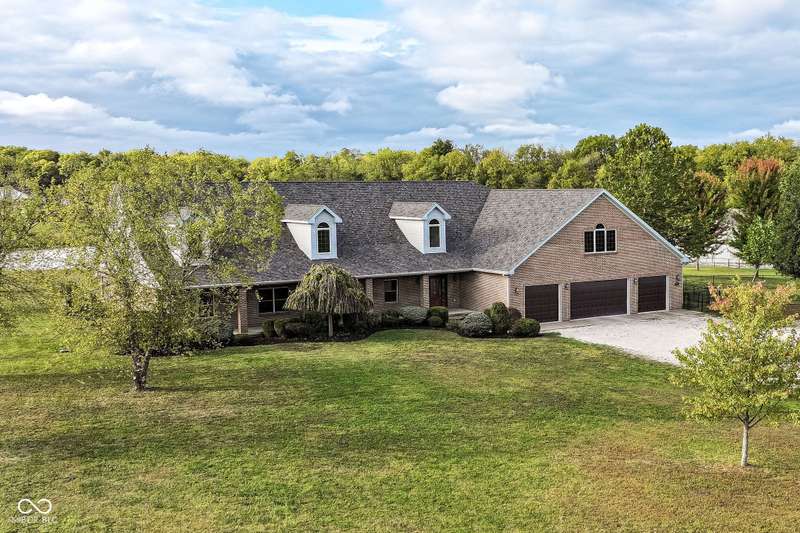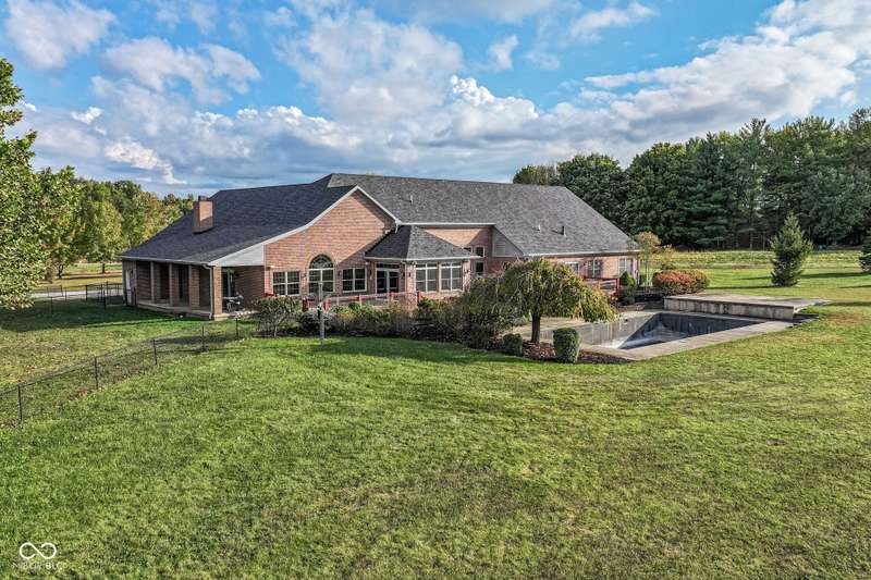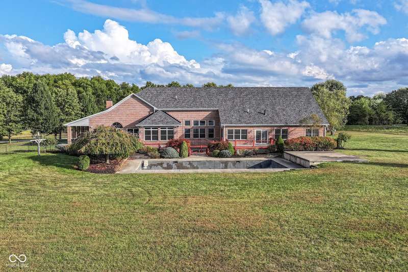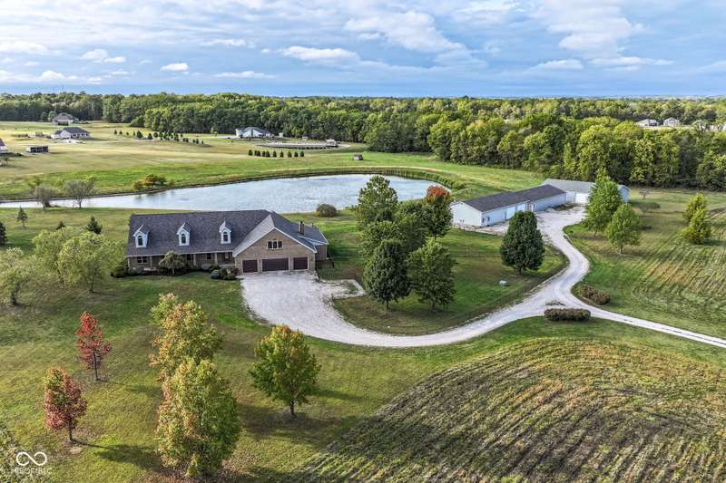 This 26.6 Acre parcel is one of the few estate class properties within 15 minutes of major Indianapolis amenities like airports, shopping, restaurants, and fast growing economic areas. Boasting a privately owned 5 acre pond, creek, forest, and pastures, you'll find wildlife like herons, ospreys, deer, turtles and more flock to the property in droves. The all brick ranch, less than 20 years old, is a main level masterpiece. Throughout the home, massive windows flank the property, and every window was placed with water views that let natural light glisten in off the private pond. Custom built for lovers of books and collections, it features a large library capable of housing thousands of books, decor, or collectibles. 6 bedrooms, with BRAND NEW carpet throughout the entire house. Custom kitchen cabinets match the rest of the home, and integrate high end built in appliances. There is no shortage of entertainment with a large game room in the basement and bonus rooms like a movie theatre, rooms for offices + exercise, and ample storage. All of which under a 1 year old roof. Additionally, there are not 1, but 3 40 x 80 ft outbuildings totaling almost 10,000 sq ft of space. Garage #1 features large equipment and tool storage. Garage #2 & #3 have full insulation, drywall, HVAC, and plumbing. Included are Workshop rooms, Offices, bathrooms, heated garages and even an additional dwelling unit / apartment. Complete with kitchen, laundry, living, bedroom, and full bathrooms. The potential of this property can only truly be witnessed in person.