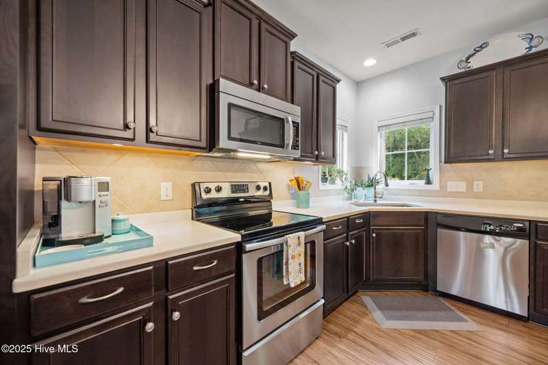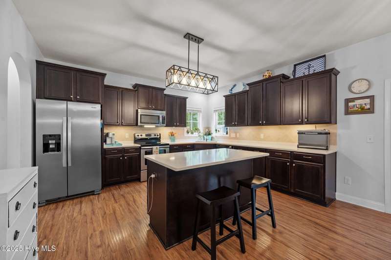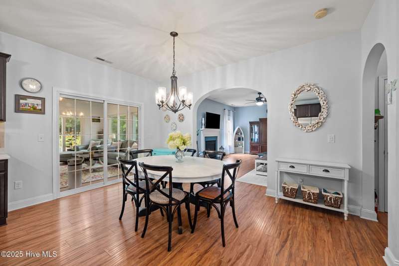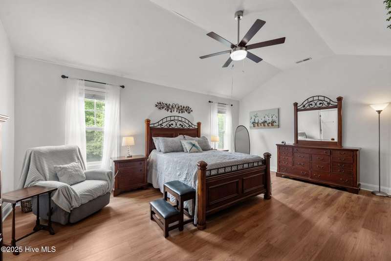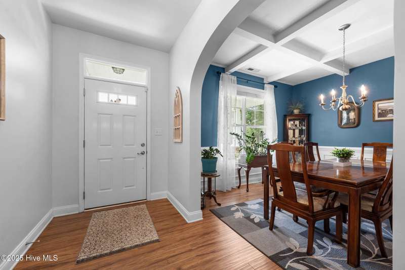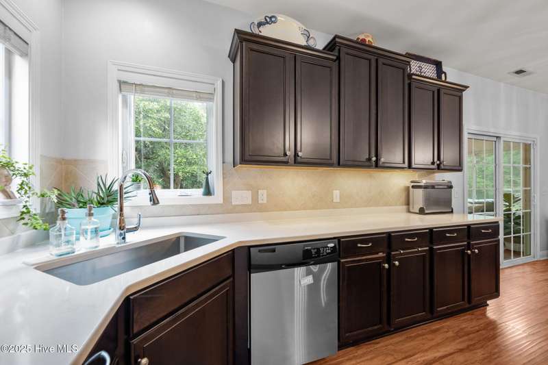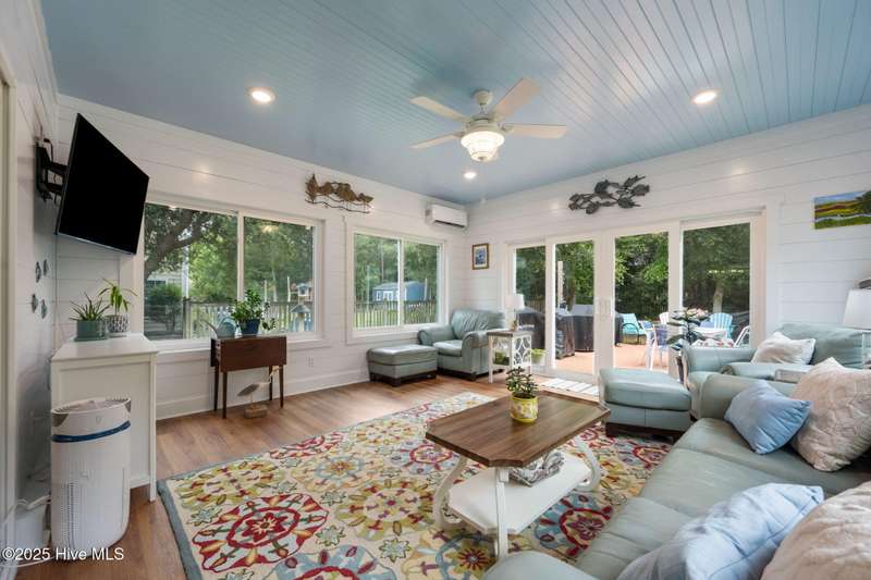 Charming and Meticulously Maintained Home in Gated Mimosa Bay! Tucked away on a quiet cul-de-sac and situated on nearly a half an acre beautiful lot, this spacious 4 bedroom, 2 bath home offers over 2,800 sq ft. As you enter the home from a cozy front porch, you'll find a formal dining room to your left with a coffered ceiling, chair-rail and wainscotting. Next, you'll find an open kitchen with a pantry, breakfast bar and dining area which joins a great room with a gas fireplace. The kitchen opens to a STUNNING new 16x16 sun-drenched all-season sunroom tastefully done with 7'' shiplap and a tongue and groove ceiling. Enjoy this room all year long while overlooking a beautifully landscaped backyard which includes a stamped patio with fire pit- ideal for relaxing and/or entertaining! This home is also equipped with a Hunter Irrigation system which is WiFi connected to the Hydrawise App, allowing you to control the system from anywhere and an Invisible Fence*! An open foyer, arched doorways and a powder room complete the main level.The second level includes a primary suite with tray ceilings, a garden tub and walk-in shower. Three additional bedrooms share a double vanity full bath and convenient laundry room. There's also ample finished and unfinished attic space.Ammenities Include: Boat Dock; Clubhouse; Community Pool; Fitness Center; Gated; Maint - Comm Areas; Maint - Roads; Pickleball; Playground; RV/Boat Storage; Street Lights; Tennis Court(s); Trail(s). Located near Marine and Navy bases, shopping, dining, North Shore Country Club and less than 5 miles from Topsail Island, where the beaches and water are second to none! This move-in-ready home offers the perfect blend of comfort, space, and convenience. This move-in-ready home offers the perfect blend of comfort, space, and convenience. Seller open to discussing closing cost contributions.HOA spent approximately $170K last year on new dock/pier complete replacement with Engineered Fiber decking.