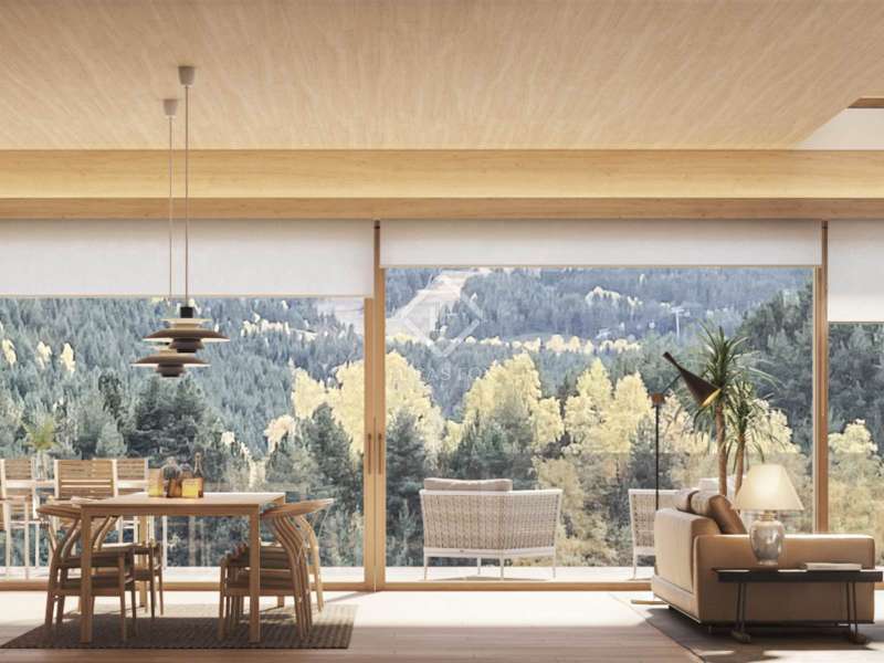 Lucas Fox is proud to present 1550 Village Resort, an exclusive new build development with homes spread across several areas. The development is located in a prime location in La Massana, at the foot of the Grandvalira ski resorts, in a natural setting yet with all amenities within easy reach. The property boasts a modern and functional design, decorated in neutral tones that maximize the feeling of spaciousness. It also boasts large, open spaces and large windows, allowing plenty of natural light to enter, making it feel very cheerful and inviting. It also offers privileged views of the surrounding nature, a luxury for enjoying total tranquility. This exclusive house has a surface area of 582 m². The floor houses the private garage, with capacity for six cars, the machine room, the utility room , and a fantastic spa area with a gym, sauna, and full bathroom . On the ground floor , we find the day area, which offers a 109 m² living-dining room-kitchen area. The floor also includes a double bedroom with a dressing room and private bathroom . Both rooms have access to a beautiful 131 m² garden , perfect for unwinding and relaxing. The first floor features the night area, consisting of three double bedrooms. One of the bedrooms is en-suite and also offers a spacious dressing room. This floor is complemented by a 17 m² side garden . Finally, on the second floor , we find the master suite, comprising a 69 m² living room, a spacious bedroom with a walk-in closet, a double bathroom , and access to a terrace. This floor boasts large windows that bathe the room in natural light, as well as a fantastic 66 m² garden . The property boasts high-quality finishes, including a security door, built-in wardrobes, porcelain floors, LED lighting, and a home automation system that controls security, air conditioning, lighting, and blinds. In the spirit of creating passive homes with total energy efficiency, it features a mechanical ventilation system, high-quality carpentry with low-emission double-chamber windows, and an air conditioning and underfloor heating system powered by aerothermics. The kitchen and bathrooms are fully equipped. The kitchen features a central island with a Neolith countertop and Siemens appliances , including a fridge-freezer, dishwasher, oven, microwave, hood, and induction hob. The bathrooms feature top-quality Villeroy & Boch sanitary ware and freestanding bathtubs. The development offers communal areas for the exclusive use of its owners, such as areas between the buildings. It also offers underground parking spaces for the owners' use. Finally, the installation of electric vehicle charging stations is planned. Contact us for more information about this exclusive property.