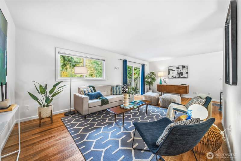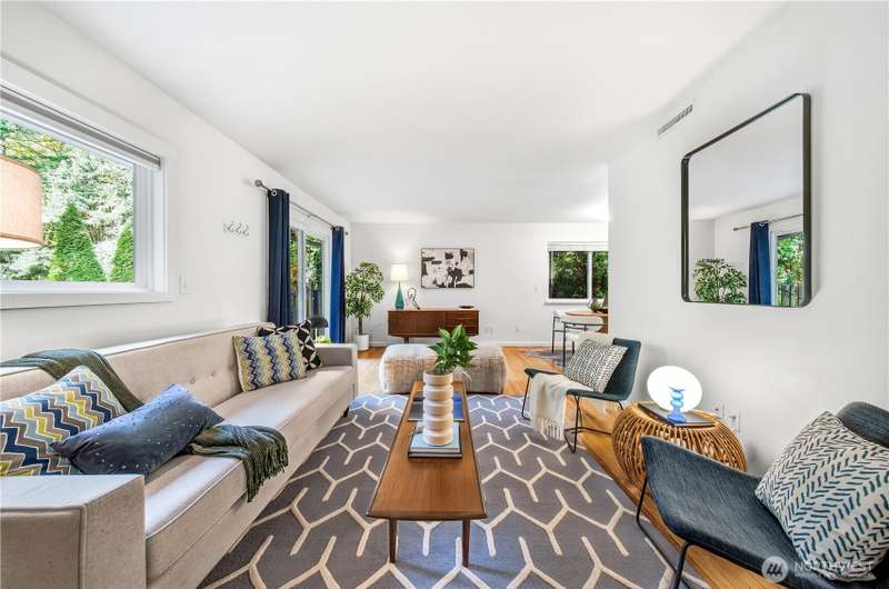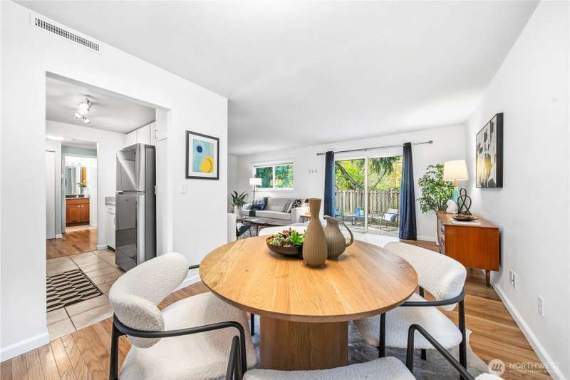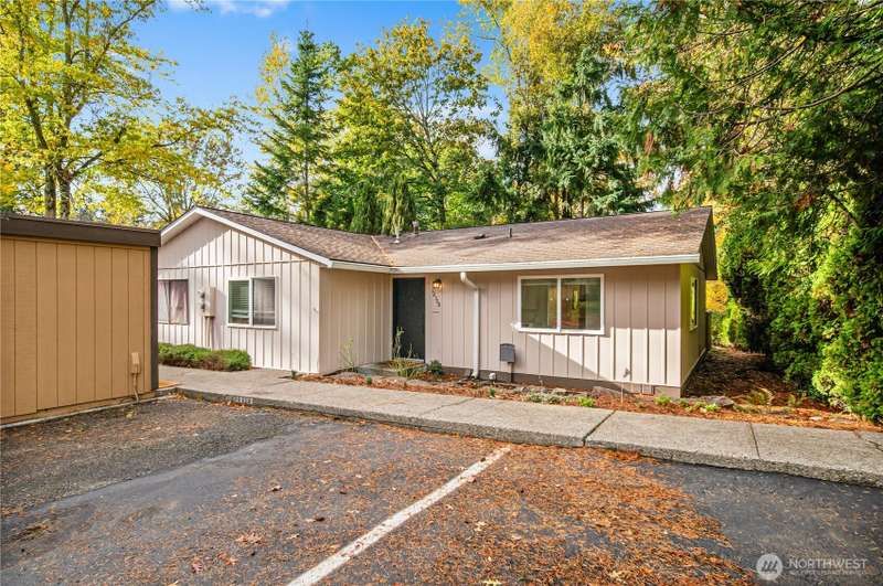 Welcome home to this beautifully maintained one-level townhouse in the heart of Kingsgate, where comfort and convenience meet serene natural surroundings. The large west facing patio and backyard are perfect for unwinding in your vegetable garden or summer BBQ's. It offers privacy as an end lot and quiet setting overlooking the Tolt Pipeline trail. Western light flows through the ample windows and slider into the main living area. Enjoy the ease of one level living with spacious living areas and bedroom and separate laundry area with additional space for an office or hobby area. The large-detached garage also has additional storage for you. Only blocks to Kingsgate shopping areas and access to the new Totem Lake ammenities!