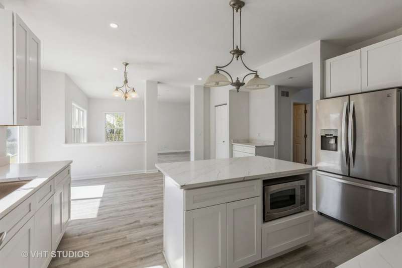 Why wait for new construction - get almost everything new in this beautifully updated 5-bedroom, 3.1-bath home in the sought-after Lakewood Valley subdivision. This home feeds into Oswego School District and is perfectly situated on a cul-de-sac. The heart of the home is the stunning new kitchen, featuring crisp white cabinets, elegant quartz countertops, stainless steel appliances, and a convenient center island with extra seating and prep space. This area flows seamlessly into the eat-in dining space and the family room, which boasts a stylish half wall with an additional quartz feature. You'll find numerous other updates throughout the home, including new flooring, lighting fixtures, carpeting, trim, and drywall. The first-floor den provides flexible space for a home office, playroom, library, or craft room. The living room opens to the dining room, creating an ideal layout for entertaining. The two-story foyer showcases a curved staircase with new lighting, adding to the home's welcoming ambiance. Large windows in the foyer and throughout the rest of the home flood the interior with natural light. The expansive first-floor mudroom, conveniently located off the attached garage, offers added functionality. Step outside to enjoy the fenced-in yard and a brick paver patio, providing ample space for outdoor relaxation and activities. Upstairs, the primary bedroom suite features two walk-in closets and a private bathroom complete with a double sink vanity, separate shower, and soaking tub. The remaining three bedrooms share a well-appointed updated full hall bathroom. The finished basement offers even more living space, including a recreation room, an additional bedroom, a full bathroom, and a storage area. Take advantage of all Lakewood Valley amenities including, clubhouse, pool, tennis courts, parks, and trails. Nearby amenities include, shopping, restaurant's, transportation and parks.