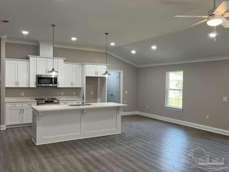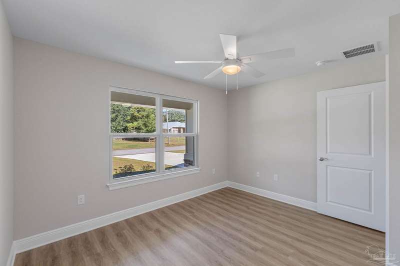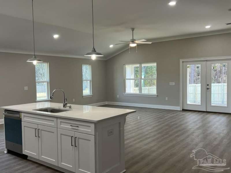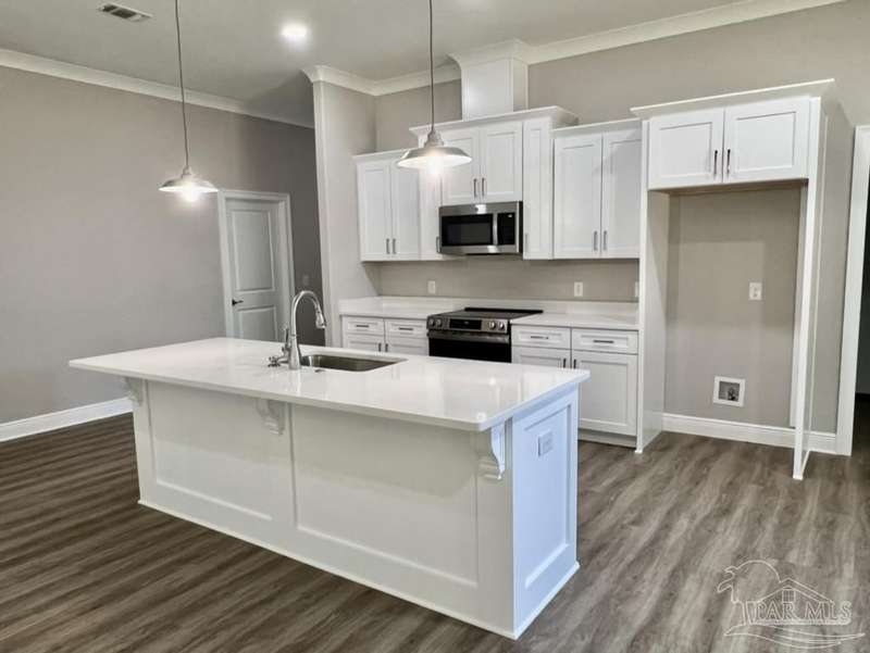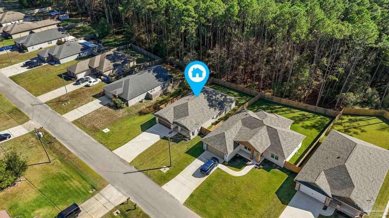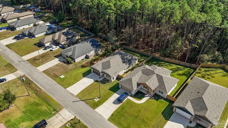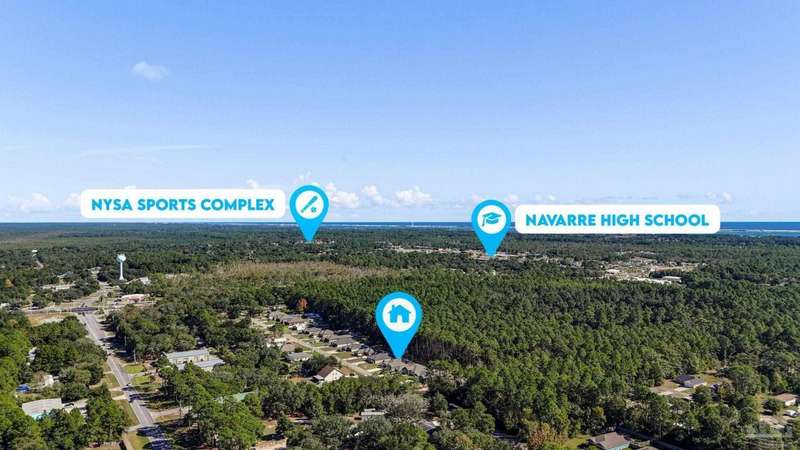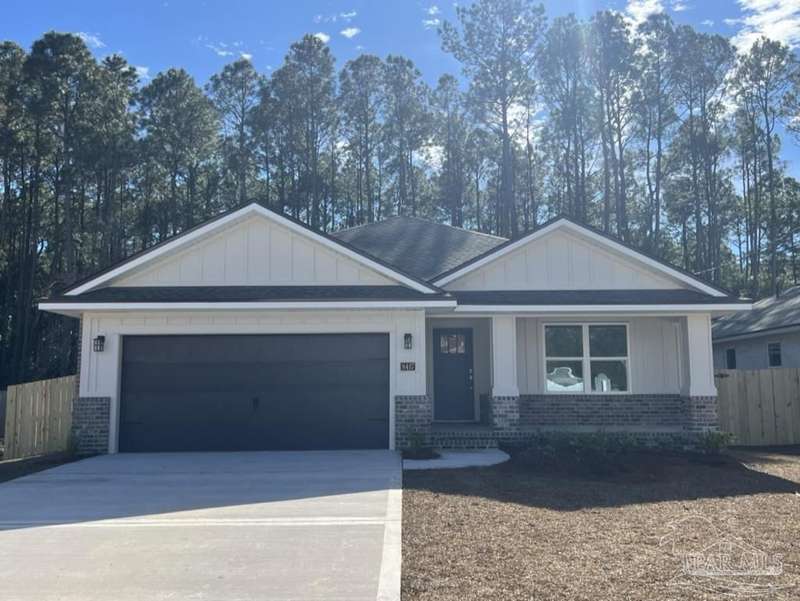 MOVE IN READY NEW CRAFTSMAN Custom Built Home ~ this luxurious 3 bed/2 bath floor plan sits at the end of 4 new builds~Great Central Location with easy access to Navarre Beach, Navarre Waterfront Park and Hwy 98 to Hurlburt Field AFB.This Stunning Robbins Builders Home offers trend setting features~Greeted by a walk in foyer sweeping through to your open floor plan ~Large kitchen enjoying custom cabinets with crown molding, beautiful quartz counter tops~under mount sink~S/S appliances, large double door pantry & closed off utility room ~sleek top center Island with pendant lights ~open flow to the family room with patio doors out to the large covered porch .Wood look LVP throughout with tiled bathrooms~ Large master with trey ceiling /ceiling fan and large walk-in closet ~master bath offers an oversized TILED shower ~ double vanity with picture frame mirrors. Additional Bedrooms are a great size with double closets and ceiling fans~Home has a welcoming covered front porch and large covered back porch to sit out and enjoy those wonderful Florida evenings ~great to cook out and entertain. Grassed yard with irrigation system for easy care in the summer months. TAEXX in wall pest control system~ Hurricane protection for windows and dimensional shingle roof for lower insurance premium. Upgrades throughout include recessed lighting, bedroom fans, crown molding, deluxe lighting package,50 Gallon water heater, garage door remotes, attic drop down stairs~ to name a few.....Call today for further information.