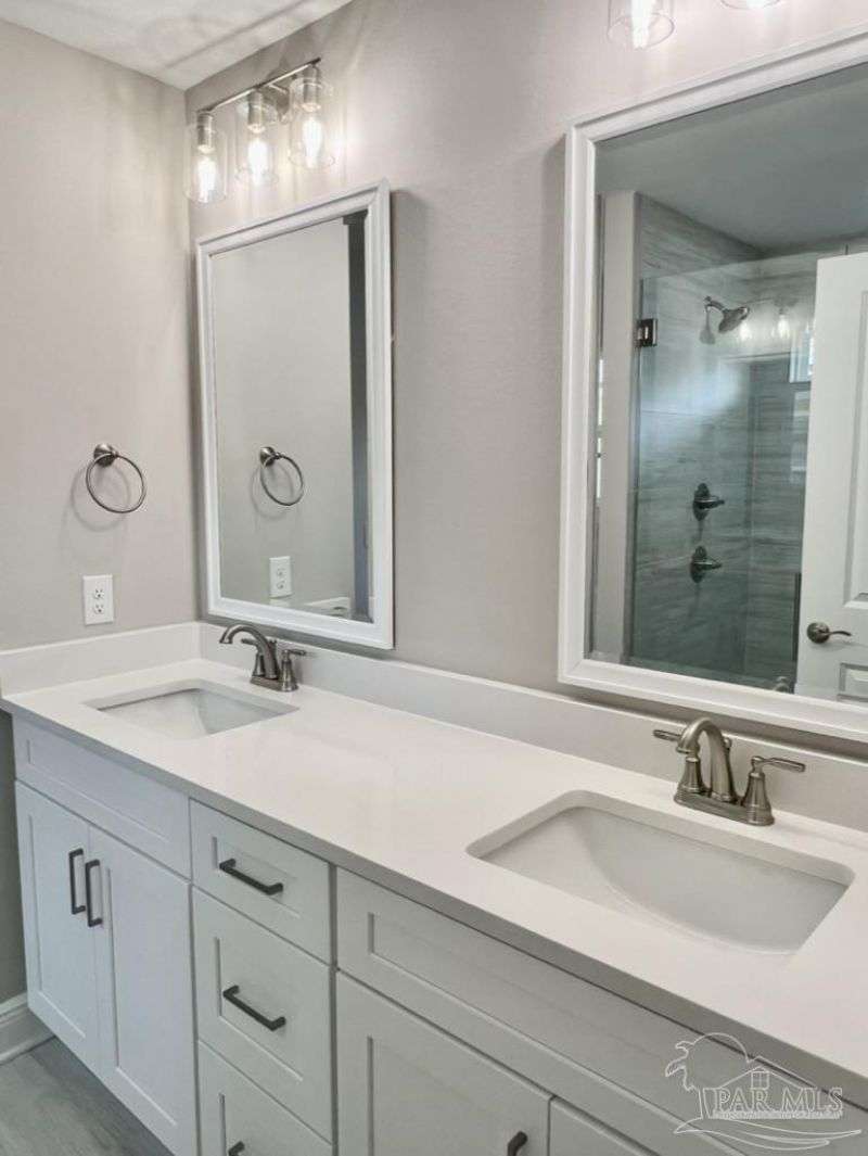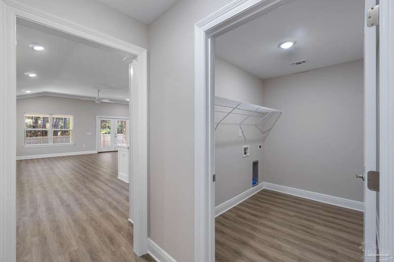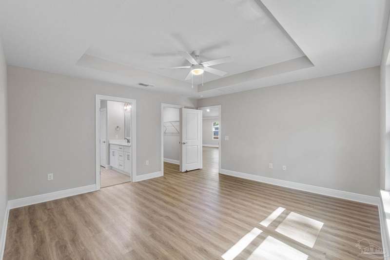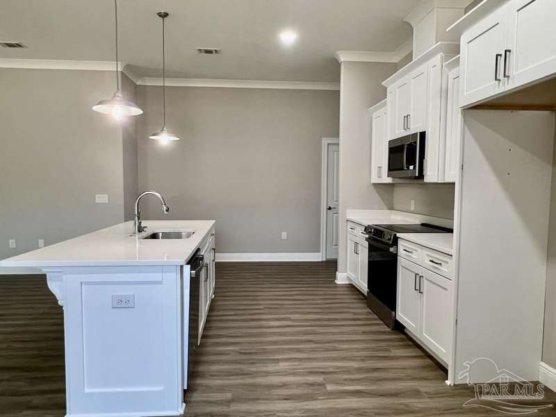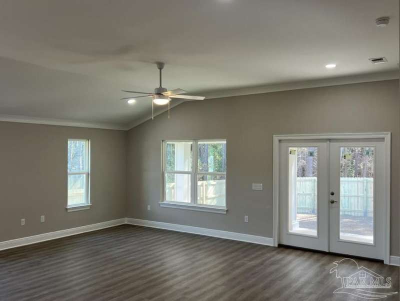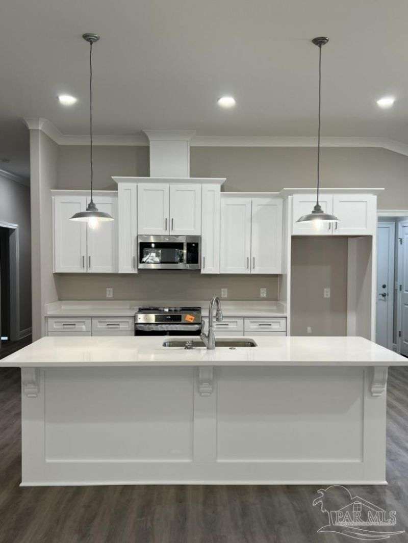 MOVE IN READY NEW CRAFTSMAN Custom Built Home ~ this luxurious 3 bed/2 bath floor plan sits at the end of 4 new builds~Great Central Location with easy access to Navarre Beach, Navarre Waterfront Park and Hwy 98 to Hurlburt Field AFB.This Stunning Robbins Builders Home offers trend setting features~Greeted by a walk in foyer sweeping through to your open floor plan ~Large kitchen enjoying custom cabinets with crown molding, beautiful quartz counter tops~under mount sink~S/S appliances, large double door pantry & closed off utility room ~sleek top center Island with pendant lights ~open flow to the family room with patio doors out to the large covered porch .Wood look LVP throughout with tiled bathrooms~ Large master with trey ceiling /ceiling fan and large walk-in closet ~master bath offers an oversized TILED shower ~ double vanity with picture frame mirrors. Additional Bedrooms are a great size with double closets and ceiling fans~Home has a welcoming covered front porch and large covered back porch to sit out and enjoy those wonderful Florida evenings ~great to cook out and entertain. Grassed yard with irrigation system for easy care in the summer months. TAEXX in wall pest control system~ Hurricane protection for windows and dimensional shingle roof for lower insurance premium. Upgrades throughout include recessed lighting, bedroom fans, crown molding, deluxe lighting package,50 Gallon water heater, garage door remotes, attic drop down stairs~ to name a few.....Call today for further information.