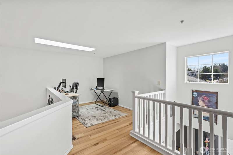 Easily convert to 3bed home! HOA includes lawn, sewer, & water w/dues. Gated community! Fully pre-inspected 2-bedroom, 2.5-bath home offers the perfect blend of style, comfort, & convenience. Vaulted ceilings & expansive windows, filling the space w/ natural light. Hardwood floors throughout the main level, while LVP flooring upstairs adds durability & modern appeal. Kitchen features white cabs, tile countertops, & stainless appliances, flowing into the dining & living areas. Main-floor primary boasts a full tub, shower, & upgraded walk-in closet. Upstairs, loft area leads to a guest bed & bath for added flexibility. Enjoy a privacy deck out back. Ac Included! Top-rated schools, shopping, exercise, & dining just minutes away.