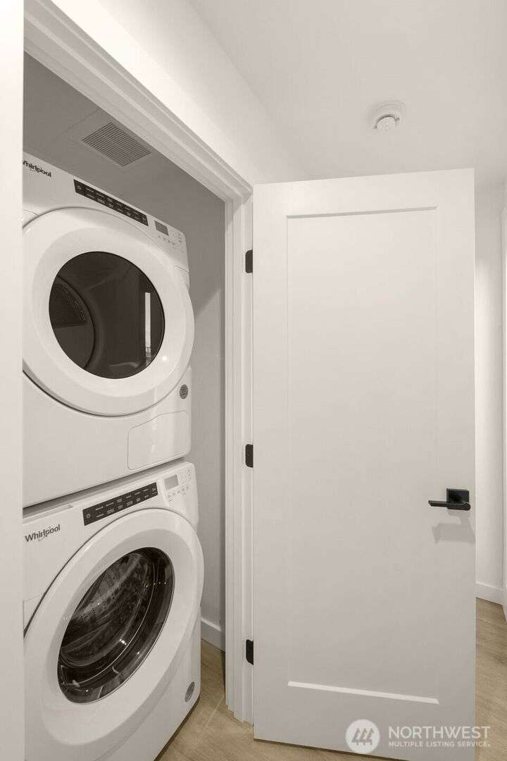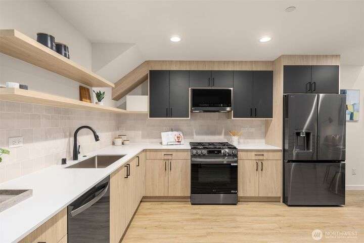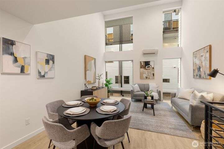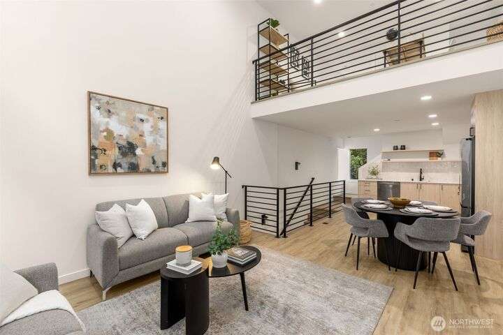 Greencity Homes is now offering the only 3-bedroom end unit home at Arlo in the heart of Wallingford! Come get it! A 94 Walk Score leads you to charming bakeries & local coffee, an assortment of inviting eateries, activities & transportation all seconds away. Enjoy coming home to this light and bright end unit home, boasting an impressive living room space with double-height ceiling, awash in natural light through expansive windows. The home is rounded out with 2 guest beds, a primary suite w/ dual closets, and finished with an entertainment-sized sunny roof deck showcasing city & Mt. Rainier views. Wallingford offers easy access to the U District, Fremont, I-5 & the rest of the city. Don't miss it! Photos of similar, interior home.