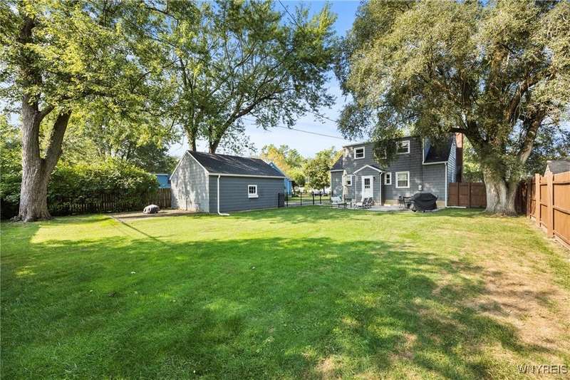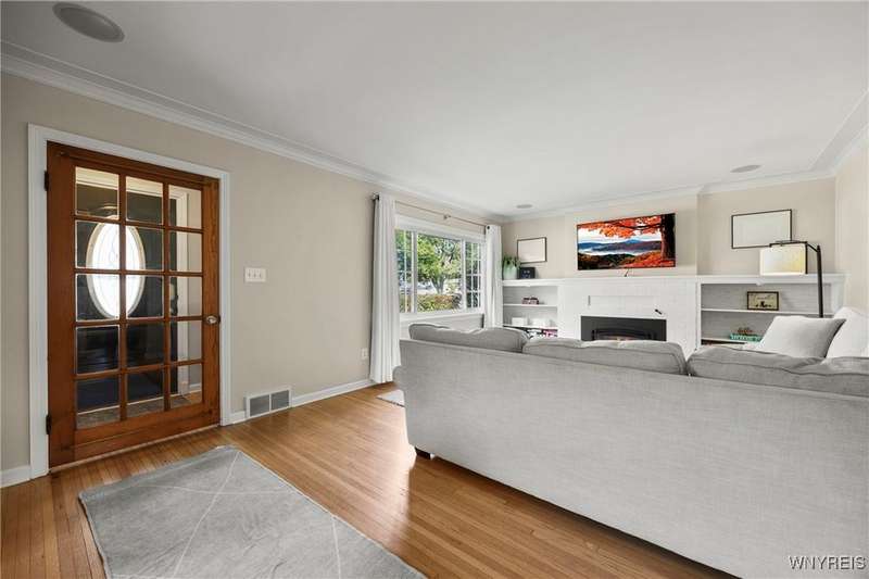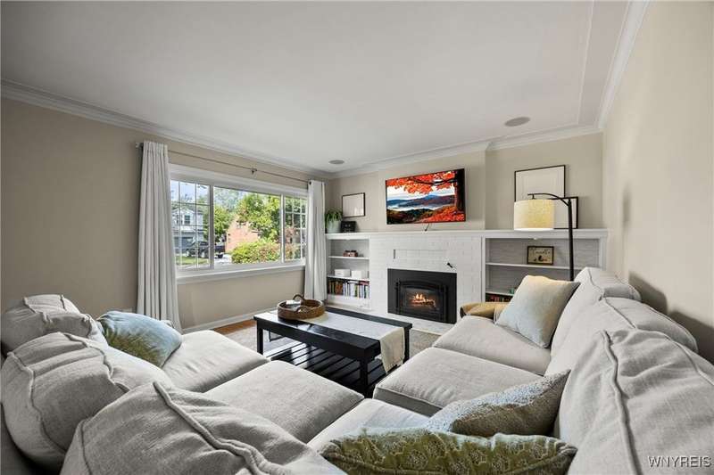 Welcome to this charming 3-bedroom, 1.5-bath home located in Williamsville. The inviting front foyer opens to a spacious living room featuring built-in shelving and a cozy gas fireplace, perfect for relaxing evenings. A formal dining room offers an ideal setting for gatherings and entertaining. The kitchen boasts quartz countertops, newer appliances, and plenty of cabinet space. Upstairs, the primary bedroom includes a large walk-in closet, providing ample storage. Step outside to enjoy the fully fenced yard and brand-new patio (installed in 2024), perfect for outdoor living. Full basement with plenty of storage. Major updates include furnace, central air, and hot water tank (2019), roof (2024) offering peace of mind for years to come. This home blends modern comfort with timeless charm?all in a sought-after location close to everything Williamsville has to offer. Showings begin Thursday September 11th at 9am.