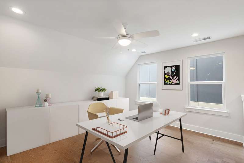 Upstairs, the spacious primary suite fits a king bed with room to spare and includes a private balcony. The ensuite bath has dual sinks, a fully tiled walk-in shower with bench, and a walk-in closet. Two more bedrooms, a second bath, and laundry (on the same floor!) complete the level. The third-floor bonus room flexes easily into a WFH setup, fitness space, or chill zone. Gig-speed AT&T Fiber, thermostat on every floor, and easy parking (garage, driveway, or street).