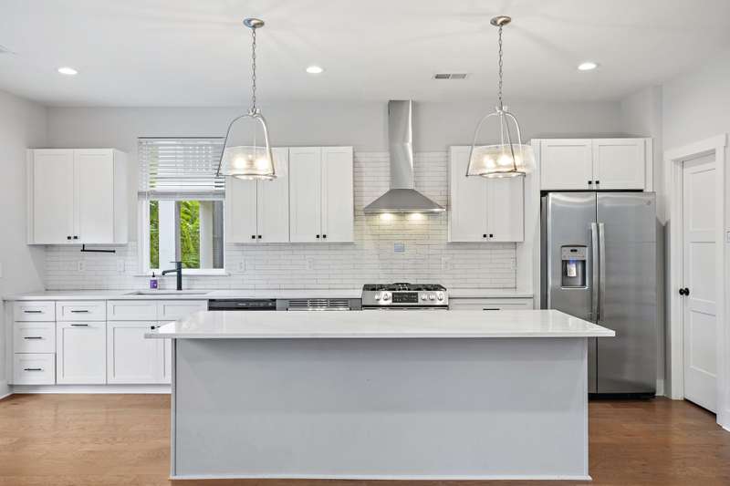 Back on the market!! Freshly updated and priced to move--BELOW COMPS! This fully detached home at The Becanni blends fresh design with a low-maintenance lifestyle, all in a vibrant, walkable neighborhood steps from Charlotte Park's 26 acres of green space. Inside, the main level has just been repainted and features an open floor plan with hardwoods throughout (no carpet, ever). A large quartz island anchors the kitchen--perfect for casual hosting or wine night--with designer lighting, stainless appliances, and loads of natural light. Step outside to your fenced backyard, just the right size for your pup or potted garden, plus HOA lawn care keeps it easy. String lights on the deck add an evening vibe you'll love.