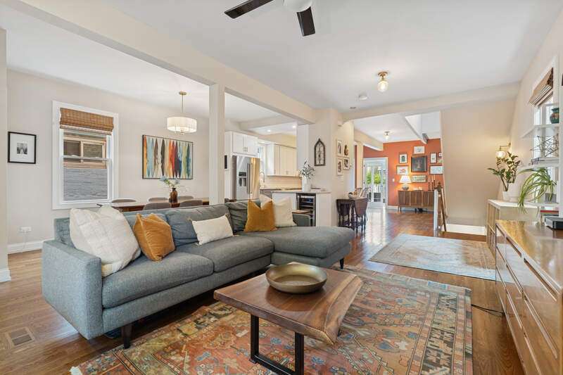 Spectacular, Move-In Ready 4 Bedroom Home in Award Winning Chappell School District! Located just steps from scenic Winnemac Park, Andersonville and Lincoln Square shops and restaurants, this beautifully renovated single-family home blends charm, function, and modern finishes throughout. An inviting front porch welcomes you into the open concept main level, featuring gleaming hardwood floors, a spacious living room, and a dedicated dining area, perfect for entertaining. The stunning white and gray kitchen boasts newer stainless steel appliances, subway tile backsplash, under-cabinet lighting, and ample cabinet space. A professionally designed mudroom leads to the lush, fully fenced backyard and 2 car garage. Upstairs, you'll find three generous bedrooms and two full baths, including a serene primary suite with a large, organized walk-in closet, dual vanities, and a beautifully tiled porcelain shower. The finished lower level offers even more space with a large family room, play area, additional bedroom, full bath, and fantastic storage. All of this in a coveted location close to Andersonville, Lincoln Square, top-rated schools, restaurants, and shops. A must-see home in one of the city's most vibrant neighborhoods!