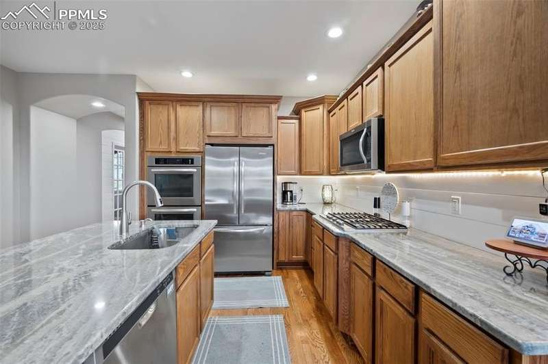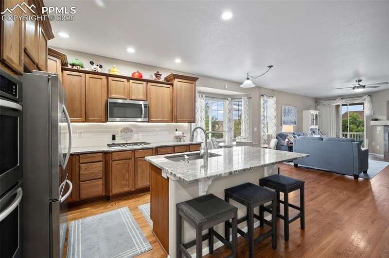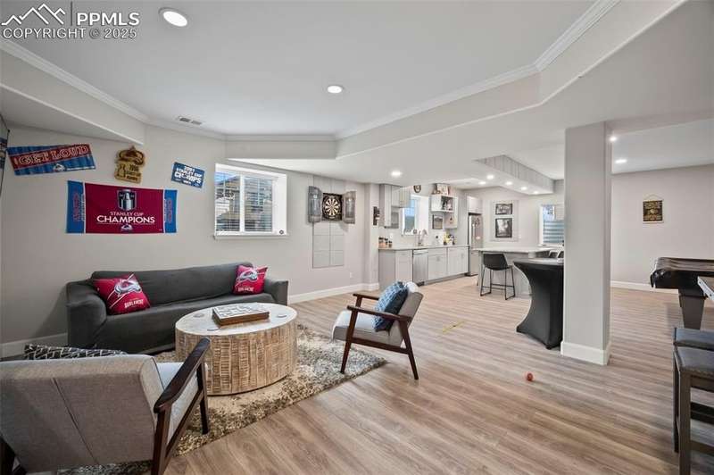 Discover the unparalleled value of a truly move-in ready home. Unlike new construction with its hidden costs and delays, this established residence on a quiet cul-de-sac already includes the expensive finishing touches: a fully finished walk-out basement, mature landscaping, and custom window coverings. Nestled on nearly 1/3 acre in a golf course community, this property is masterfully designed for multi-generational living. It offers 6 bedrooms, 4 bathrooms, and a dedicated office, ensuring space and independence for everyone. Recent 2021 updates include a newer roof. The expansive basement is a standout feature, complete with a kitchenette, a second laundry area, and private walk-out access—perfect as an in-law suite or guest retreat. It also includes an entertainment area with a pool table for family gatherings. Enjoy the lush, irrigated front yard and a serene, low-maintenance xeriscaped backyard. Located just 20 minutes from Parker and Elizabeth, and 35-40 minutes from Lone Tree, Centennial, and DIA, you get the perfect blend of peaceful living and city convenience. Experience the turn-key advantage and make this versatile home yours!