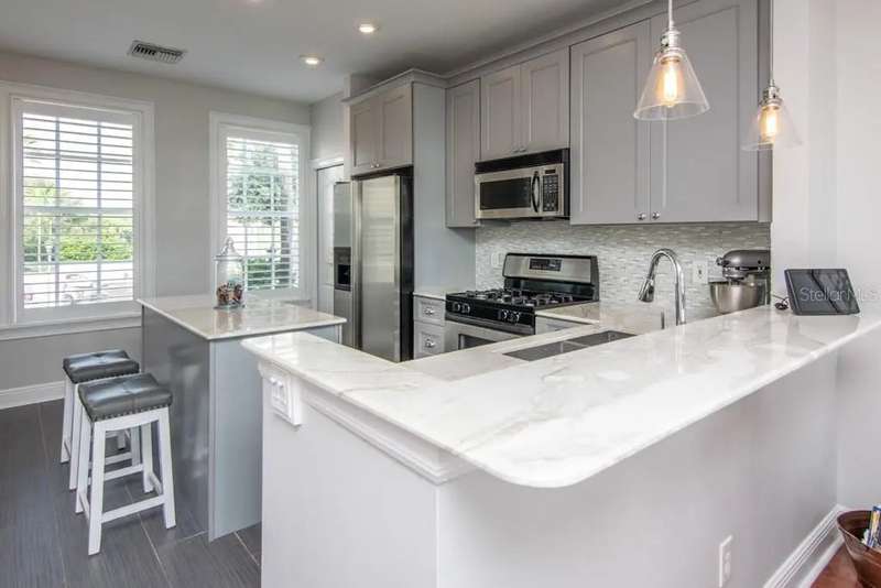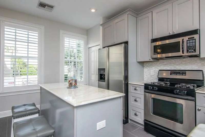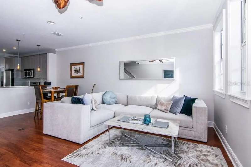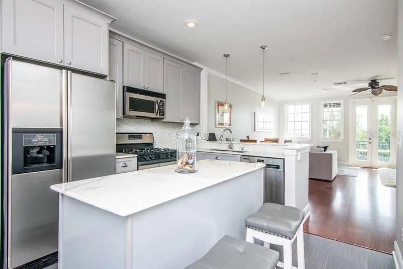 Great executive rental overlooking the water. Min lease of 1 year; not pets please. Nothing to do but move right into this beautifully renovated waterfront townhome located on impressive Harbour Island, a 24-hour guarded and gated and planned community in the Heart of the City. You’ll be impressed by the attention to detail throughout this lovely home with freshly painted Level 5 Drywall finish throughout, encased windows, crown moldings, wood flooring in living spaces, stairs, bedrooms and hallways; large designer tile flooring in downstairs bonus room and kitchen, wains coating, gorgeous stylish light fixtures, the list goes on and on. The updated and remodeled kitchen has beautiful marble counters and tile backsplash, large island, custom cabinets with pull out drawers, substantial plantation style shutters, and an eat at breakfast bar with pendant lighting overlooking the living area. New French doors lead from the living room out to a balcony overlooking the canal where you can watch dolphin play and cruise ships sweep by. The upstairs master suite features double entry doors, vaulted ceilings, a walk in closet outfitted with closet organizers, and plantation shutters. The master bath has a tranquil zen-like feel with its newly updated finishes where you will enjoy dual sinks, a soaking tub, and separate shower. The second and third bedrooms are also upstairs along with the second renovated full bath. A bonus room, located on the first floor of the townhome, is light and airy and has high quality new sliding doors that lead to a covered patio and grassy area perfect for our furry family members. The Harbour Island planned community is conveniently located for easy access to Bayshore, Tampa’s Riverwalk, restaurants, shopping, entertainment, and hospitals. For boating enthusiasts, there is a marina located on the west side of the island for one to lease or own a slip or join the Freedom Boat Club (also located along the Islands Waterwalk). Hurry, this won’t last!
