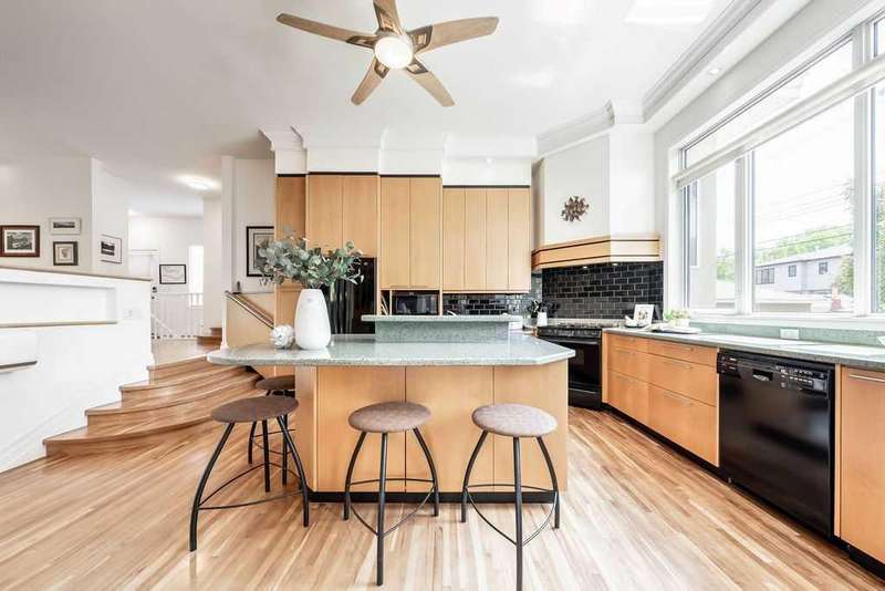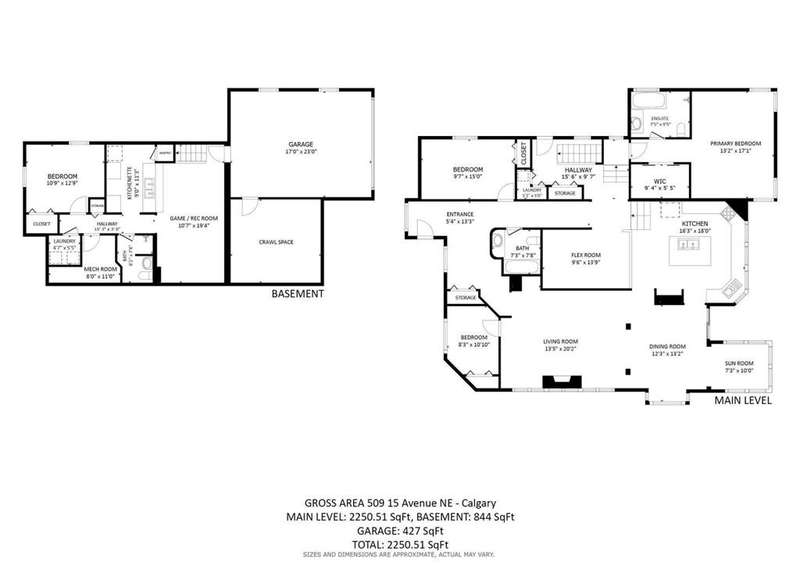 Welcome to a rare and exciting opportunity in the heart of Renfrew, one of Calgary's most sought-after inner-city communities. Situated on an expansive 11,151 square foot lot (.26 acres), this exceptional property offers dual access from both 15 Avenue and 4 Street NE and sits adjacent to Beaumont Circus Park—a unique circular green space currently undergoing city-led revitalization and beautification. Whether you're an investor seeking long-term land value or a homeowner looking to establish roots on an impressive parcel, this property delivers both present-day comfort and future potential. Originally built in 1946, the bungalow was thoughtfully renovated and expanded approximately 25 years ago, blending character with contemporary function. The home is set back on the lot, creating an urban oasis surrounded by mature landscaping and multiple outdoor zones designed for relaxation and connection to nature. The expansive, park-like yard is a true highlight—a tranquil sanctuary featuring beautifully designed paving stone patios and walkways, vibrant flower beds, sculpted shrubs, and a charming water fountain. Whether you're entertaining guests, enjoying a quiet morning coffee, or tending to the garden, this thoughtfully curated outdoor space provides year-round enjoyment and privacy. Step inside and you’ll find 9-foot ceilings throughout the main floor, with an airy 11-foot ceiling in the kitchen. The kitchen is a true showpiece, featuring sleek Denca cabinetry, generous counter space, and expansive windows that frame tranquil views of the park-like backyard. The open-concept living and dining areas offer a welcoming space to gather, with a cozy gas fireplace, custom window seat, and a bright sunroom that seamlessly blends indoor and outdoor living. The primary suite includes a walk-in closet and a spacious four-piece ensuite. Two additional bedrooms and a well-appointed main bathroom complete the upper level, along with a versatile den perfect for a home office or library. Downstairs, the fully developed basement features a large family room, a kitchenette/summer kitchen, a fourth bedroom, second laundry area, and direct access to the attached double garage (17' x 23'). An additional detached garage (20' x 24') with a 40-foot driveway offers ample parking and storage for vehicles, hobbies, or an RV. Additional features include a 60,000 BTU heat pump for air-conditioned comfort and a stormwater capture system, reflecting a commitment to sustainability and eco-conscious living. With its prime location, substantial land size, and blend of comfort, functionality, and future development potential, this Renfrew gem is a truly rare find. Don’t miss the chance to own a significant piece of Calgary’s inner city—whether to live in, hold, or reimagine for the future.