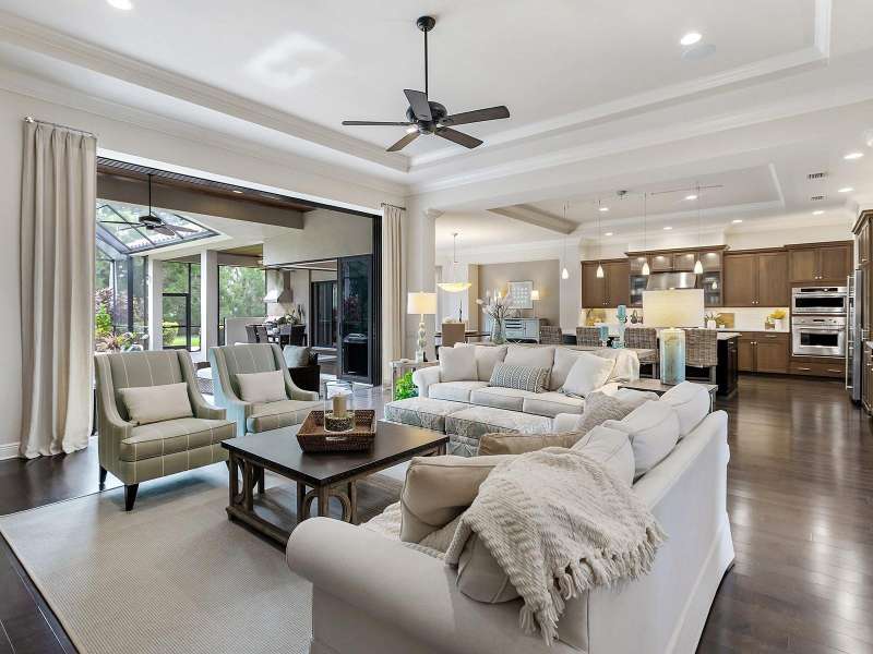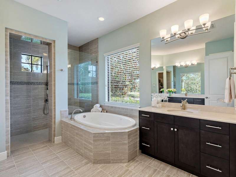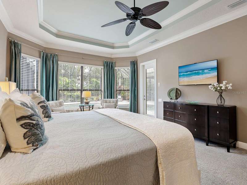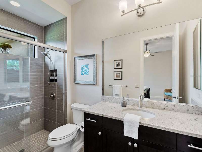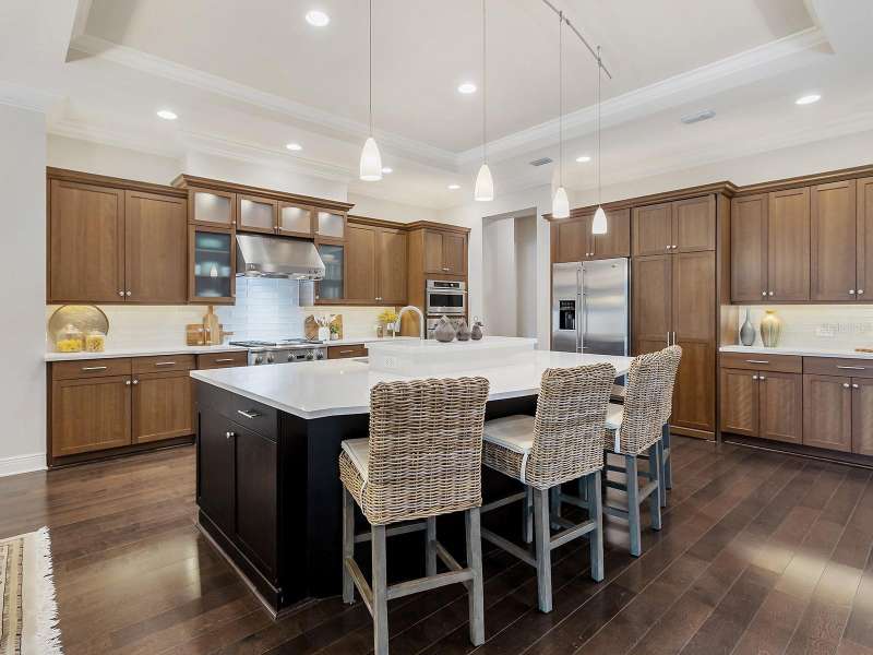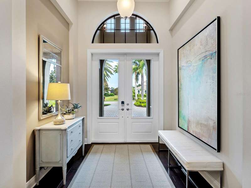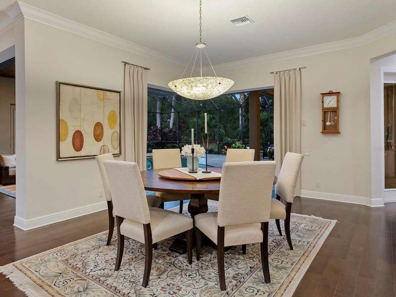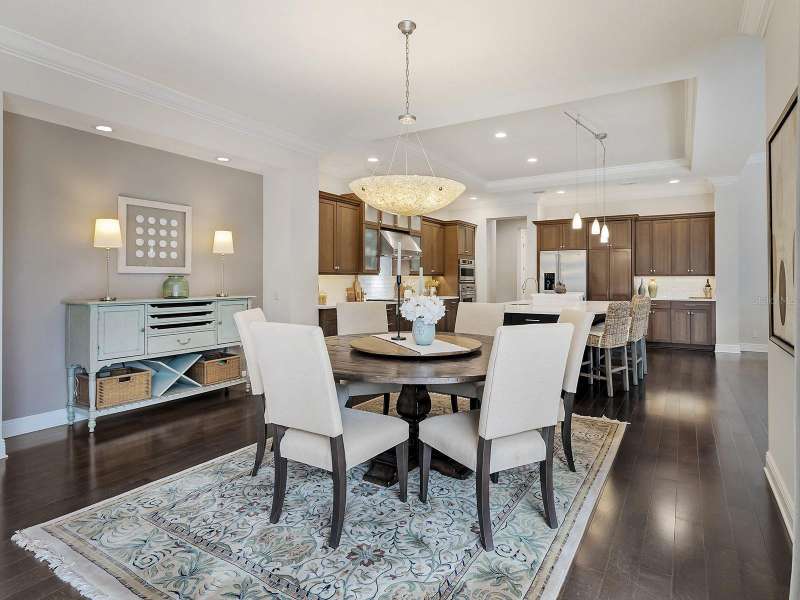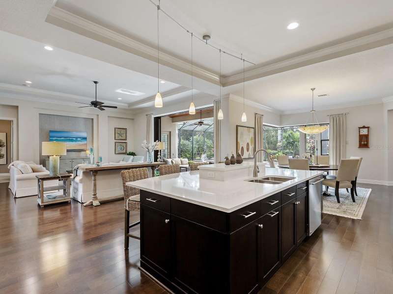One of the most desirable homes in all of Country Club East is now available! Boasting the second largest lot in the entire neighborhood and located within the desirable Royal Valley enclave, this custom expanded Bermuda home by Arthur Rutenberg is truly a rare find. Enjoy nearly one full acre of private and lush landscaping on a secluded street with a cul-de-sac bump out beside the house for added privacy. This customized residence is perched amongst towering palms with a wide circular paver driveway, massive side and back yards, and oversized 3-car side garage. Gracing nearly 3,700 SF, this customized residence gleams with a stacked stone façade, wood flooring, crown molding, designer touches, and smart storage. Large double impact glass front doors welcome you in from the manicured front drive to a spacious foyer where the modern floor plan offers an open flow perfect for entertaining. The central great room with tray ceiling has an entertainment niche with designer wallpaper, and impact sliding glass doors to the lanai. Your outdoor oasis is the epitome of Florida living with a freeform, heated saltwater pool and spa with water feature surrounded by lush garden-like landscape. Enjoy entertaining on the paver lanai from the two covered entertaining areas with cypress wood ceilings, and the summer outdoor kitchen with grill and 2025 bar fridge. Inside prepare meals from the chef’s kitchen with a quartz central island, perfect for guests to gather around and watch the chef create culinary delights from the GE Monogram stainless steel appliance suite including gas cooktop with griddle and wall oven. The custom cabinetry offers unparalleled storage around the perimeter and at the island, display space in the frosted glass uppers, and extra storage in the cleverly hidden large walk-in pantry. The adjacent dining room with designer chandelier spills out onto the lanai through disappearing corner glass sliders. The primary suite offers comfort and luxury with a warm color palette, seating area overlooking the garden, dual walk-in closets with custom storage, and spa-like bathroom with soaking tub, walk-in shower, and dual split vanities plus makeup area. Guests will enjoy their own private suites in two separated guest bedrooms each with en-suite bathrooms, walk-in closets, and enough space for king beds. Working from home has never been better in the spacious front den featuring a separate bay-style sitting area and double doors, then retire to the spacious bonus room perfect as a media or game room, both of which are surrounded by extra insulation for sound reduction. This exceptional residence also features a pool powder bath, large storage room, functional laundry with plentiful cabinetry, and oversized 3-car side-loading garage. Peace of mind is secured with impact windows and doors, surge protector, 2025 tankless water heater, 2025 inspection of the roof with 13-15 years additional life, and silver Florida Green Home Certification. Enjoy the country club lifestyle at the gated Country Club East with 3 community pools, fitness center, clubhouse, walking trails, social events and more. If you’re looking for additional amenities, membership to Lakewood Ranch Golf and Country Club is optional and available for access to 3 Clubhouses, 4 championship 18-hole golf courses, fitness center with pool, and tennis and pickleball courts. Lakewood Ranch is the top multi-generational community in the country for 7 years in a row.