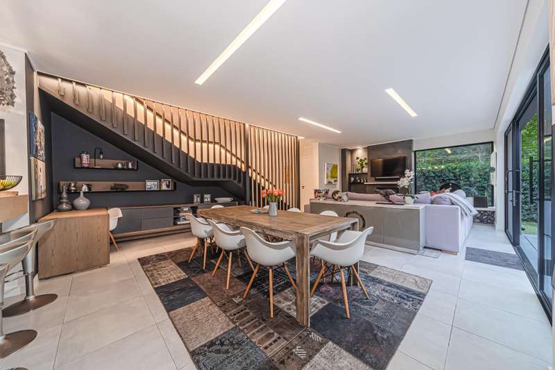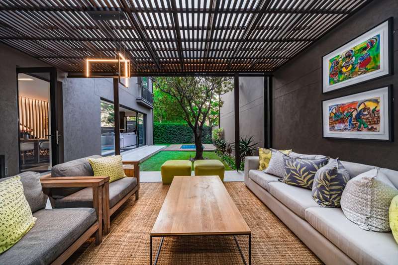 Experience the pinnacle of prestige in this ultra-secure enclave, home to 12 Ultra-Luxury Duplex Villas that redefine contemporary elegance. Designed for those who prioritise sophistication, eco-consciousness, layers of security in a boomed-off road and in a private estate. This exclusive development sets a new benchmark in opulent and easy living. Just steps from the renowned Hyde Park Shopping Centre, 38 Morsim is a globally recognised, award-winning masterpiece, recently honoured with the prestigious 5-star Best Residential Property Award in South Africa. The bespoke villa exudes refined luxury, featuring open-plan kitchens with integrated Smeg appliances, seamlessly flowing into sunlit living and dining spaces accentuated by soaring ceilings. A built-in fireplace and signature lighting by acclaimed designer Stephen Pikus, elevating the ambiance. Oggi wooden flooring harmonises with off-shutter concrete finishes to create an atmosphere of unparalleled sophistication. Designed for elegant entertaining or intimate family gatherings, the indoor-outdoor living areas transition effortlessly to a north-facing private garden and pool, offering an idyllic retreat. Lush landscaping, featuring preserved indigenous flora and mature trees, ensures privacy, natural shade, and a serene haven for native bird species. With sustainability at its core, the development boasts inverter backup power and a backup water system, providing uninterrupted comfort and peace of mind. Perfectly positioned near Gauteng?ÇÖs premier schools and world-class shopping destinations. A home that offers the ultimate lifestyle living and truly desirable address Please call to arrange a private viewing.. FEATURES Exceptional Design & Layout Luxurious Finishes Throughout Oggie Hardwood Flooring Top-of-the-Range SMEG Appliances Excellent Security Backup Water System Double-Glazed Glass Bespoke Light Fittings Convenient Access to Major Arterials Private Splash Pool