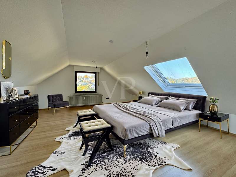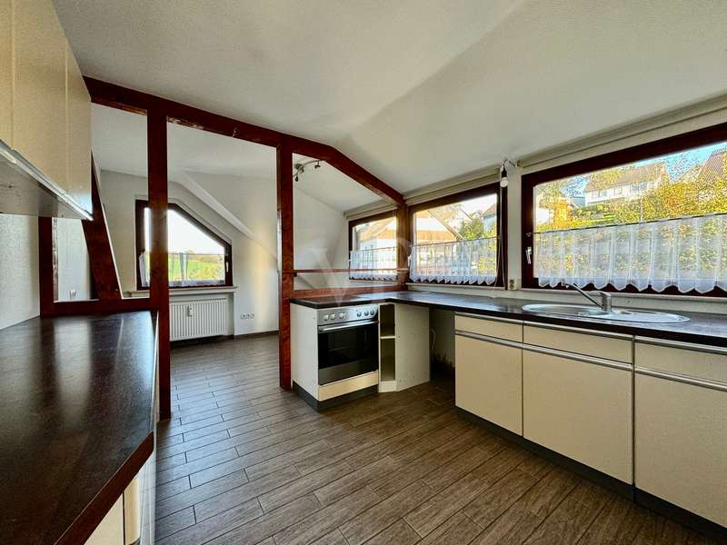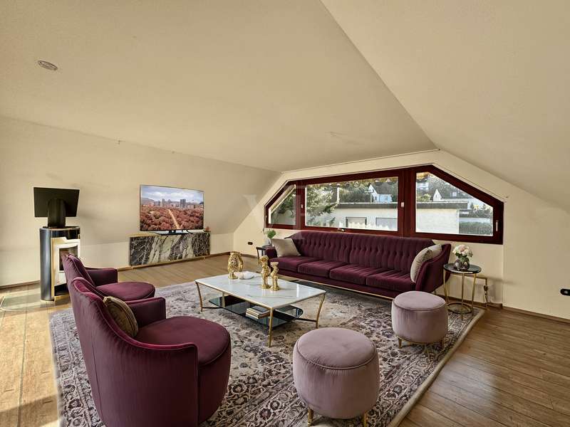 This attractive top-floor apartment offers generous space for two to three people on a living area of approx. 110 square meters. Its clever layout with a total of three rooms makes it ideal for couples or small families who appreciate a combination of privacy and shared living areas. In the center of the apartment is a spacious eat-in kitchen, which offers enough space for a dining area and invites you to spend sociable evenings with family and friends. The completely modernized bathroom offers both a bathtub and a shower, combining comfort and functionality. Light-colored tiles and high-quality fittings contribute to the modern look of the bathroom and invite you to relax. One of the special highlights of this apartment is the access to a large garden, which offers plenty of space for outdoor activities. Whether you enjoy gardening or simply want to enjoy nature from the comfort of your own home. The charm of the top floor location is evident not only in the cozy atmosphere of the living spaces, but also in the outstanding views, which convey a sense of openness and freedom. These make everyday life fade into the background. The apartment is in a well-connected location that offers both tranquillity and accessibility. Public transport, shopping and leisure facilities are all within easy reach, resulting in an excellent balance between urban connections and the opportunity to retreat. The clever combination of well thought-out room layout, modern furnishings and attractive location make this top-floor apartment an ideal opportunity for anyone who values comfortable and stylish living. Potential buyers are cordially invited to arrange a viewing to see the many benefits of this property for themselves. For further information or to arrange a viewing appointment, please do not hesitate to contact us. Take the opportunity to gain a personal impression of this special top-floor apartment. We look forward to introducing you to this attractive residential offer. An energy certificate was not available at the time the advertisement was placed.