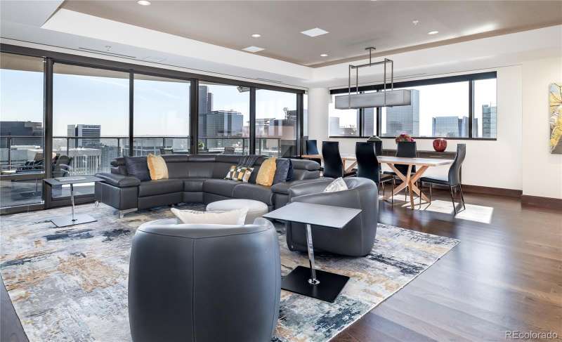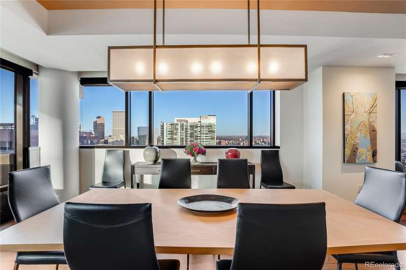 Elevated luxury awaits in this sophisticated, updated residence on the 33rd floor of the iconic Four Seasons Private Residences in the heart of downtown Denver. Occupying a full quarter of the floor, this expansive condo blends modern elegance with breathtaking views of the city skyline.Inside, sleek lines and exquisite finishes define the open-concept living space, offering seamless flow and endless possibilities for personalization. The gourmet kitchen is a showstopper, featuring high-end appliances, custom cabinetry, wine refrigerator, and a spacious walk-through pantry that also houses full-sized laundry and generous storage.Designed for both comfort and entertaining, the home includes an integrated entertainment system and a private balcony outfitted with heatersperfect for enjoying the cityscape in any season. The serene primary suite offers spectacular views, a luxurious en-suite bath with double vanity and built-in cabinetry, and thoughtful privacy from the rest of the home. Two additional en-suite bedrooms are ideally separated for guests or office space.Enjoy the ease of two deeded parking spaces in a secure garage and indulge in world-class Four Seasons amenities, including 24-hour concierge, room service menu, valet, access to the pool, fitness center and spa and so much more. This is city living at its most refinedwelcome to a life of everyday luxury.