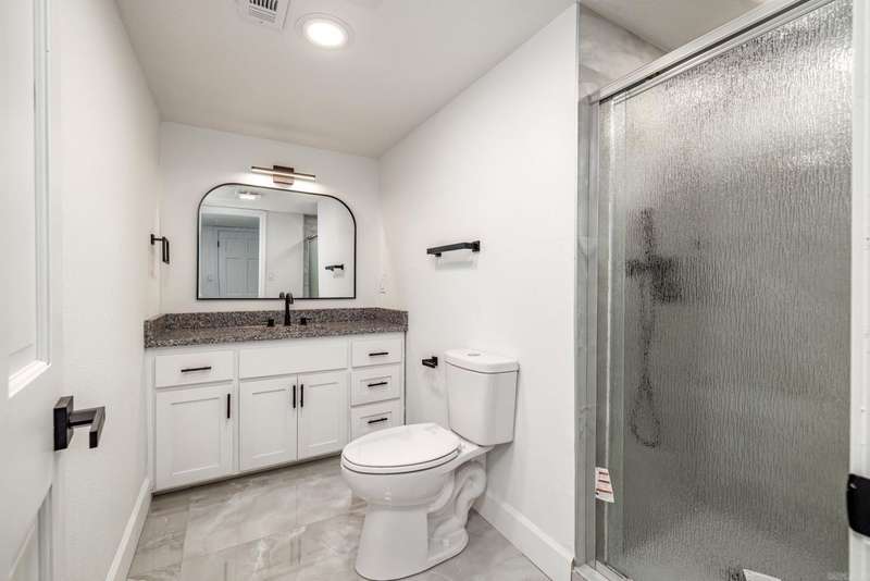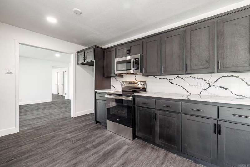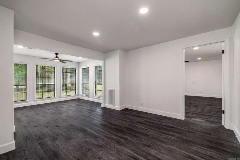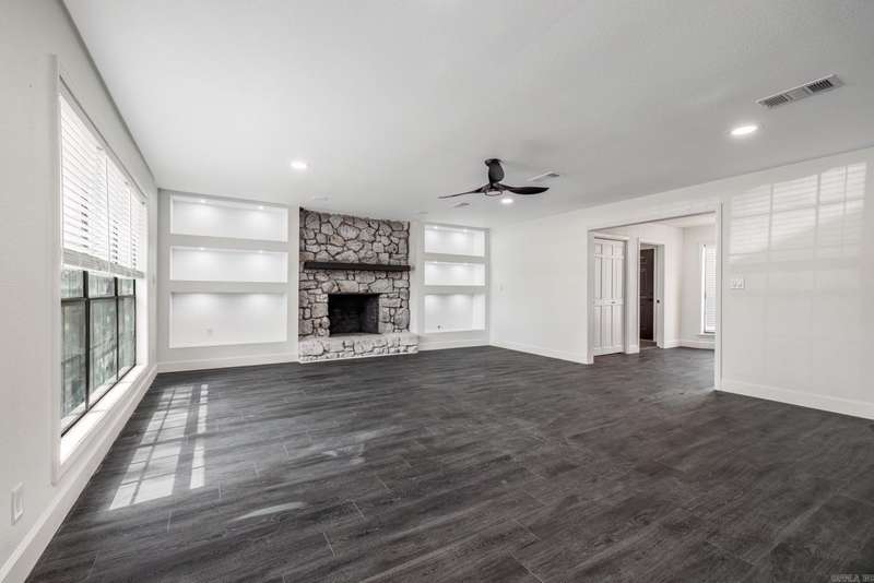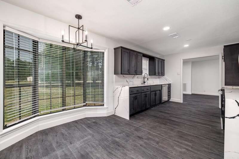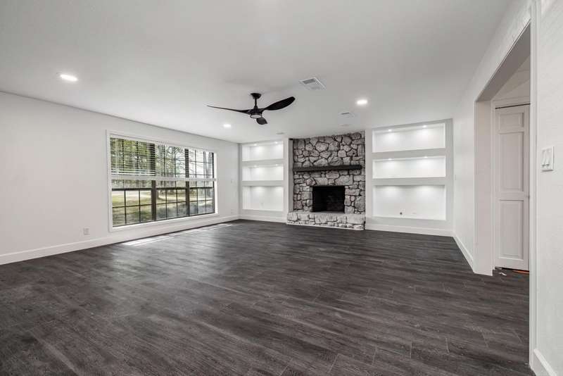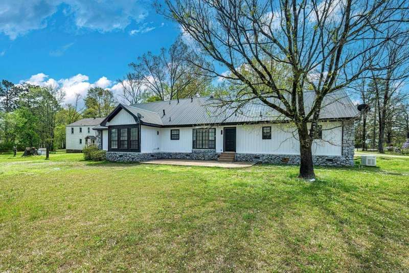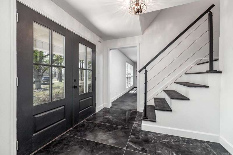 This beautifully remodeled 4-bedroom, 3-bath home sits on 1.23 acres, offering the perfect blend of modern elegance and comfort. The master suite on the main level features a luxurious walk-in shower, while the stunning waterfall quartz countertops add a touch of sophistication to the kitchen. A spacious laundry room includes a convenient dog bath, making pet care a breeze. The home also boasts a two-car garage and a whole-home generator for added convenience and peace of mind. Upstairs, you'll find a generous game room, two additional bedrooms, and a full bath, providing plenty of space for family and guests. The living room is warm and inviting with a beautiful fireplace, while the dining room flows seamlessly into a sunroom or office space, perfect for work or relaxation. The modern stairwell in the entryway adds a striking design element, setting the tone for the home's stylish interior. With a durable metal roof and thoughtful updates throughout, this home is both stunning and practical.