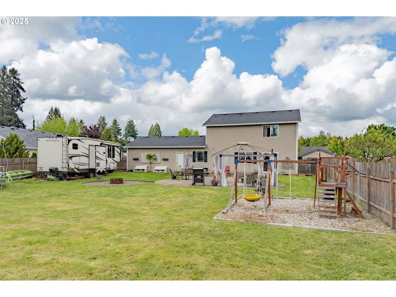 What are you waiting for? This is it! Sitting on a spacious 0.29-acre fully fenced yard, with custom concrete patio offering an ideal space for outdoor entertaining or simply relaxing in your own private backyard retreat. Inside find a nicely laid out floorpan offering both comfort and flexibility. The kitchen is situated between the dining and living areas serving as the heart of the home. It features a double oven, tile backsplash, and eating space at the counter top. Upstairs, a versatile flex space can easily accommodate a home office, playroom, or nursery. NEW laminate flooring up the stairs and in the office and bedroom. Equipped with a BRAND NEW heat pump, the home ensures energy-efficient comfort year-round. The roof was replaced in 2019, adding peace of mind. A full three-car garage provides ample space for storage, hobbies, or home projects, and there’s even dedicated RV parking for added convenience. Septic inspected and pumped. Ducts recently professionally cleaned. New laminate flooring up the stairs, the landing, flex space, and bedroom. New carpet in the living area downstairs too! Minutes away are Moulton Falls, Lucia Falls, and some of Clark County’s finest outdoor recreation opportunities. This is more than just a house—it’s a home in one of the area’s most special areas in North County. Come see for yourself what makes life in Yacolt so special.