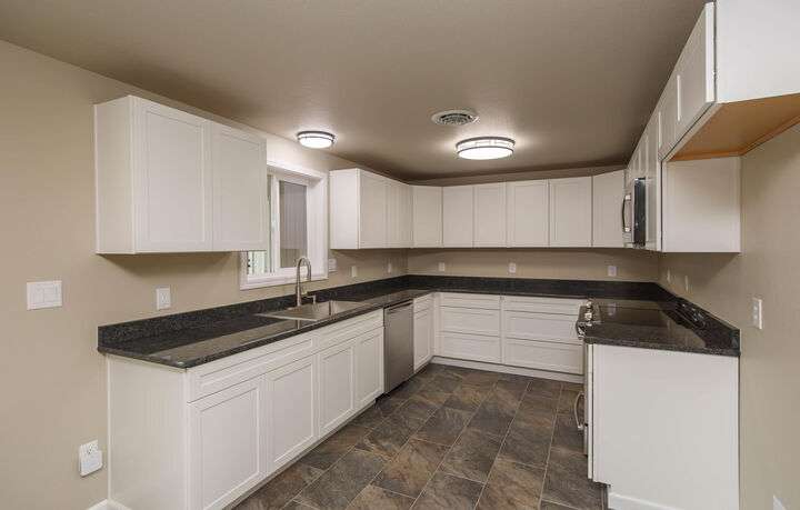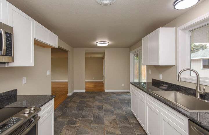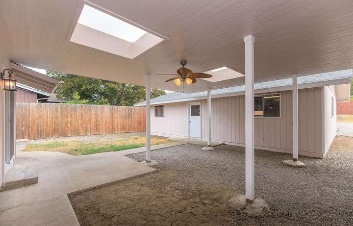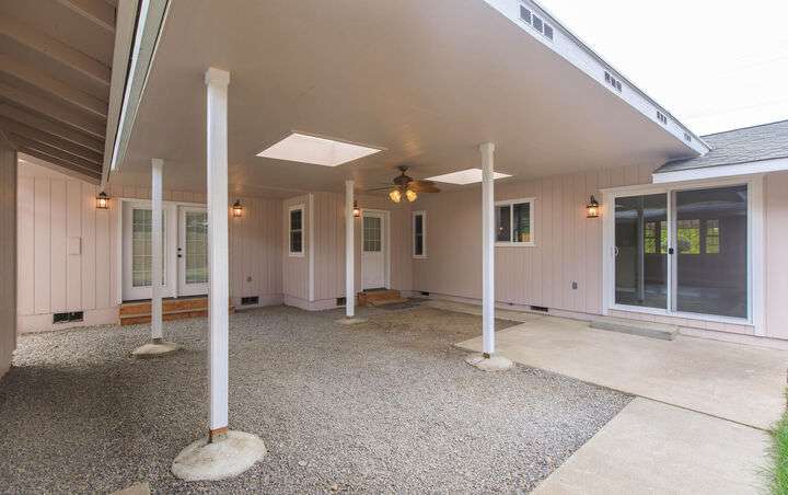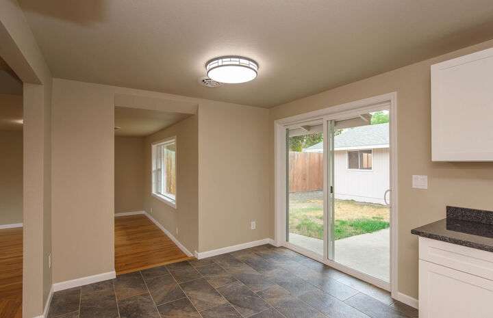 This Medford home is designed for the way you live, comfortable, flexible, & full of spaces to enjoy. With 3 bedrooms plus an office & 2 baths, everyone has room to spread out. The new kitchen sports tile floors, granite counters, cabinets, & stainless appliances. Gather in the living room around the wood stove, with hardwood floors & a generous addition that expands your options for entertaining or relaxing. At day's end, retreat to the primary suite with its vaulted ceilings, cozy gas fireplace, & doors leading out to a covered courtyard; the perfect spot for morning coffee or evenings outdoors. Outside, the 720 sq. ft. shop with double garage doors is ready for projects, storage, or toys. This .35-acre lot has space for multiple RVs, fenced yard, garden, dog run, & sprinkler system. Strong bones, Milgard windows, 2x6 walls, & updated insulation mean this home feels as solid as it does inviting. Near schools, the park & bike path. A place where life can flow naturally, indoors & out